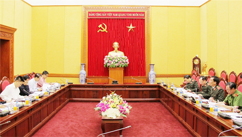 Thượng tướng Nguyễn Văn Thành, Ủy viên Trung ương Đảng, Ủy viên Ban Thường vụ Đảng ủy CATW, Thứ trưởng Bộ Công an; đồng chí Hà Ban, Ủy viên Trung ương Đảng, Phó Trưởng Ban Tổ chức Trung ương đồng chủ trì buổi làm việc.