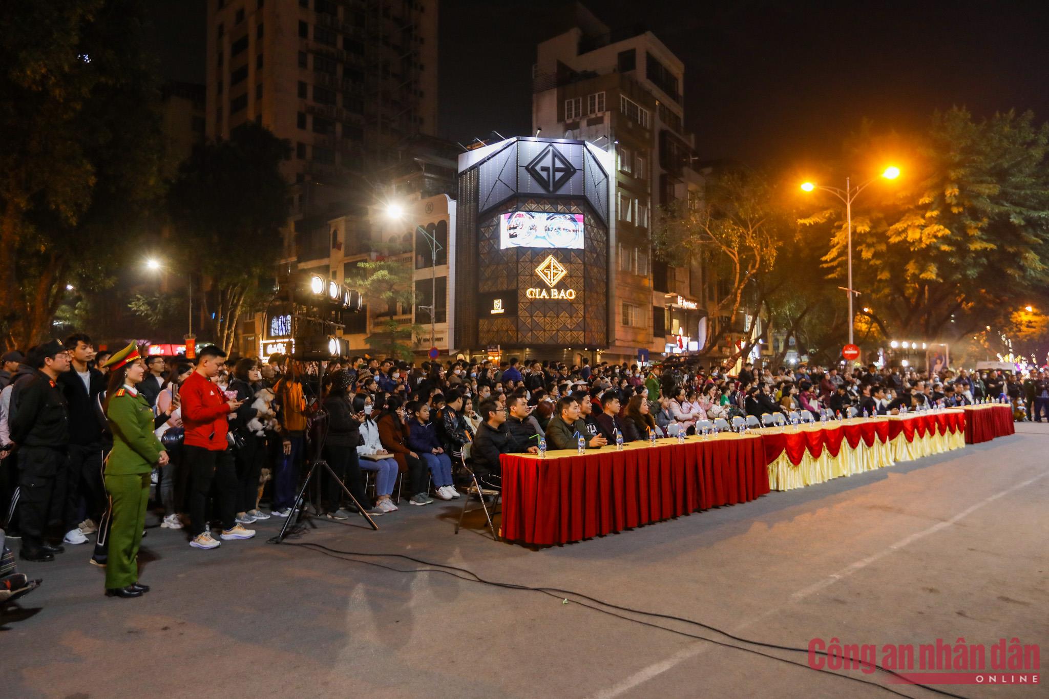 Chương trình được thực hiện trong khu vực phố đi bộ Trần Nhân Tông. Rất đông người dân Thủ đô đã tập trung tại tượng đài CAND.