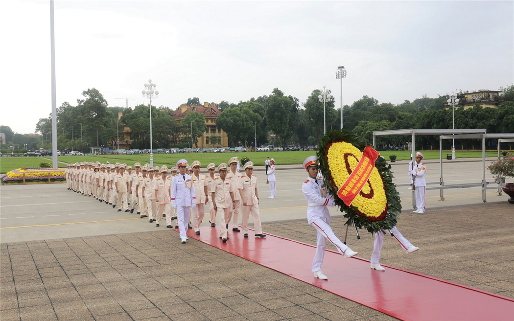 Trước anh linh Chủ tịch Hồ Chí Minh, Đoàn đại biểu Đảng ủy Công an Trung ương, lãnh đạo Bộ Công an bày tỏ lòng thành kính, biết ơn vô hạn trước những công lao to lớn của Người đối với sự nghiệp cách mạng vẻ vang của Đảng và dân tộc Việt Nam nói chung, với lực lượng Công an nhân dân nói riêng; nguyện phấn đấu đi theo con đường mà Chủ tịch Hồ Chí Minh và Đảng ta đã lựa chọn; tiếp tục phát huy truyền thống của lực lượng Công an nhân dân, tận trung với Đảng, tận hiếu với dân, xứng đáng với sự tin tưởng của Đảng, Nhà nước trên lĩnh vực bảo vệ an ninh Tổ quốc; đẩy mạnh học tập và làm theo tư tưởng, đạo đức, phong cách của Bác; nêu cao tinh thần đoàn kết, ý chí cách mạng, bản lĩnh chính trị vững vàng, bảo đảm an ninh quốc gia, trật tự, an toàn xã hội, vì cuộc sống bình yên và hạnh phúc của nhân dân.