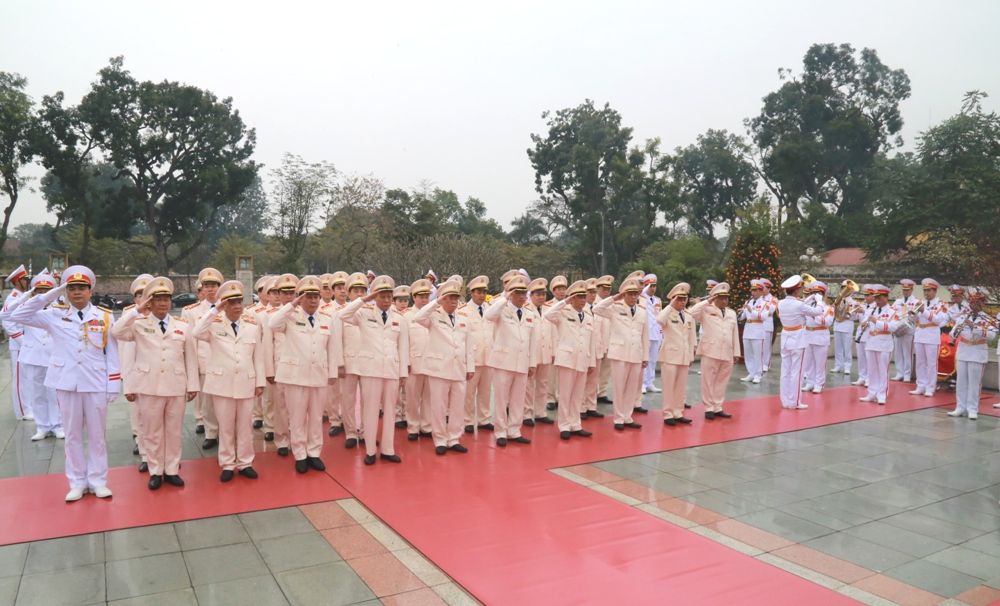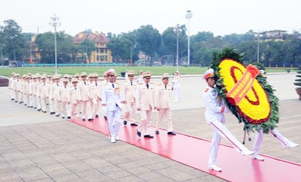 | Đoàn đại biểu Đảng ủy Công an Trung ương, lãnh đạo Bộ Công an vào Lăng viếng Chủ tịch Hồ Chí Minh. |