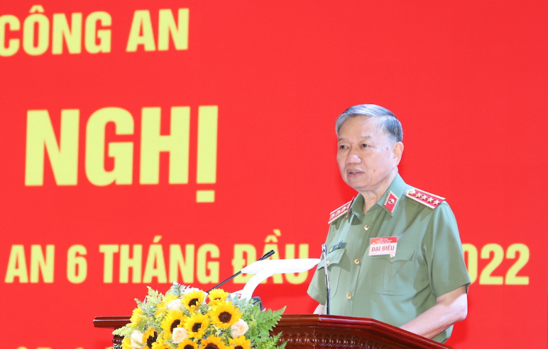 Phát biểu kết luận hội nghị, Bộ trưởng Tô Lâm ghi nhận, biểu dương những thành tích, kết quả mà Công an các đơn vị, địa phương và toàn lực lượng CAND đã đạt được trong 6 tháng đầu năm 2022; nhấn mạnh 8 mặt công tác lớn mà toàn lực lượng CAND đã nỗ lực, cố gắng từ Trung ương đến cơ sở, hoàn thành xuất sắc các nhiệm vụ được giao, đạt được nhiều mục tiêu, yêu cầu đề ra. Kết quả bao trùm nhất là giữ vững ổn định chính trị, bảo đảm an ninh quốc gia, trật tự an toàn xã hội, không để bị động, bất ngờ, góp phần phục vụ phát triển kinh tế - xã hội của đất nước. Đặc biệt, niềm tin của Đảng, của Nhân dân đối với lực lượng CAND được nâng cao.