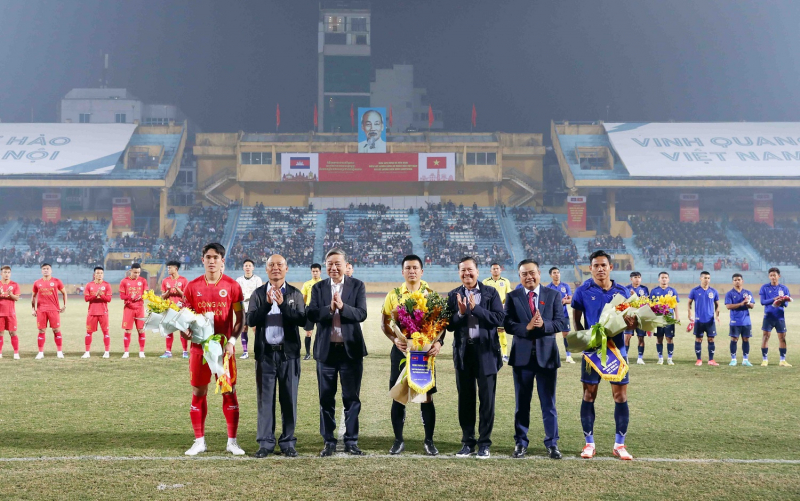Tại buổi lễ, Bộ trưởng Tô Lâm và đồng chí Trần Sĩ Thanh cùng Thống tướng Neth Savoeun, Tổng Cục trưởng Tổng cục Công an quốc gia, Bộ Nội vụ Vương quốc Campuchia và Thống tướng Sao Sokha, Phó Tổng Tư lệnh Quân đội hoàng gia, Tư lệnh hiến binh Vương quốc Campuchia tặng hoa chúc mừng Tổ trọng tài, cầu thủ đội CLB Bóng đá CAHN và đội bóng Bộ Tư lệnh Hiến binh Campuchia.