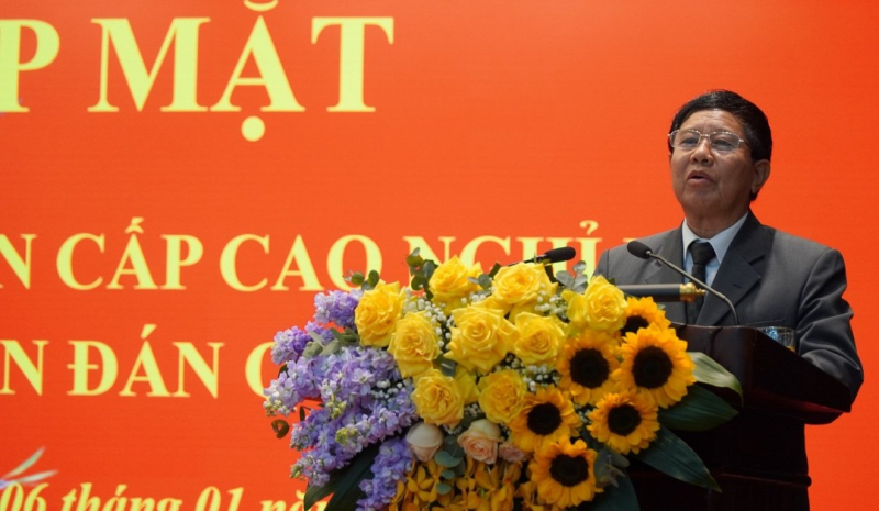 Thiếu tướng Vũ Hùng Vương đại diện các cán bộ Công an cấp cao nghỉ hưu phát biểu tại buổi gặp mặt