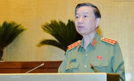 | Bộ trưởng Tô Lâm cùng các đồng chí lãnh đạo Bộ Công an dự Hội nghị. |