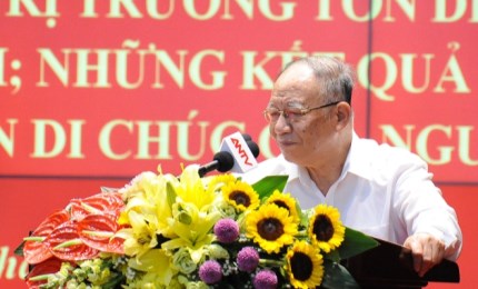 Phát biểu khai mạc Hội thảo, đồng chí Phạm Minh Chính, Ủy viên Bộ Chính trị, Bí thư Trung ương Đảng, Trưởng Ban Tổ chức Trung ương khẳng định, những lời di huấn của Chủ tịch Hồ Chí Minh trong bản Di chúc, từng chữ, từng câu đều giản dị và thiêng liêng. Bản Di chúc của Người đi vào lịch sử như “một kiệt tác bất hủ”; một “bảo vật quốc gia” gắn liền với tên tuổi của Người. Hội thảo khoa học cấp Quốc gia kỷ niệm “50 năm thực hiện Di chúc của Chủ tịch Hồ Chí Minh” được tổ chức trọng thể vào lúc toàn Đảng, toàn dân, toàn quân ta đang ra sức thi đua thực hiện thắng lợi các chủ trương, mục tiêu và nhiệm vụ trong Nghị quyết Đại hội lần thứ XII của Đảng. Hội thảo cũng là dịp để chúng ta tuyên truyền, cổ vũ mọi cán bộ, đảng viên và các tầng lớp nhân dân học tập và thực hiện tốt những di huấn của Người, làm theo tấm gương tư tưởng, đạo đức, phong cách Hồ Chí Minh; ra sức phấn đấu thực hiện thắng lợi sự nghiệp đổi mới, xây dựng và bảo vệ Tổ quốc...