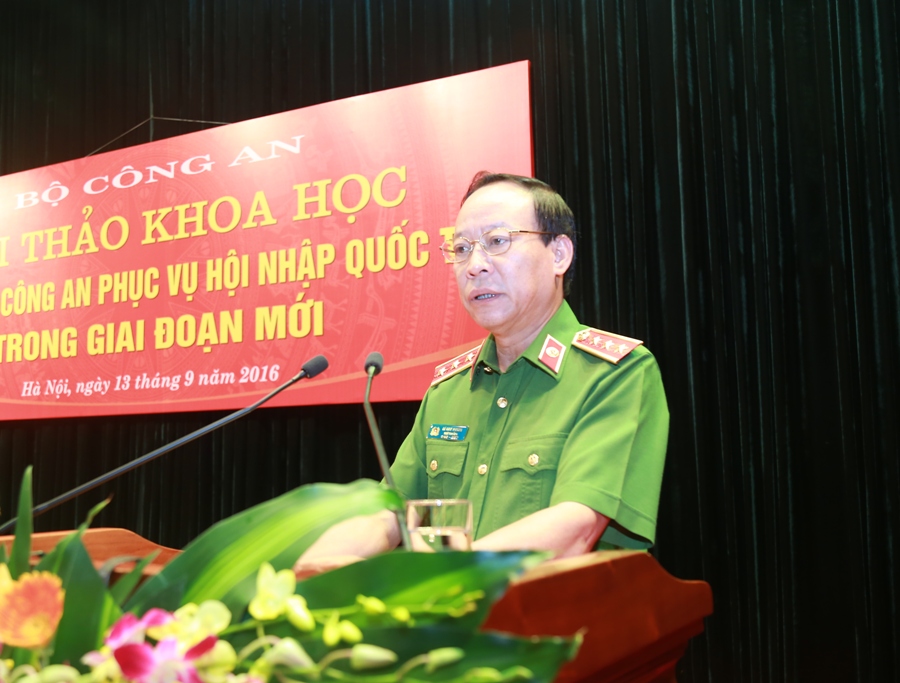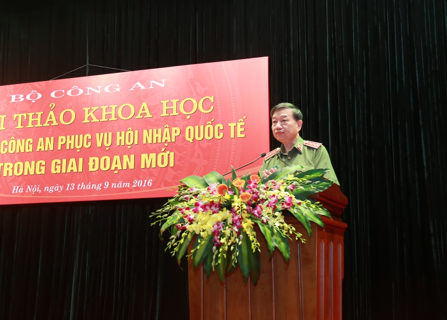 Phát biểu khai mạc Hội thảo, Bộ trưởng Tô Lâm nêu rõ: Qua 30 năm thực hiện công cuộc đổi mới do Đảng ta khởi xướng và lãnh đạo, lực lượng Công an nhân dân (CAND) đã có bước phát triển mạnh mẽ, toàn diện; đổi mới sâu sắc về nhận thức, tư duy, biện pháp, đối sách trong công tác bảo vệ an ninh quốc gia (ANQG), giữ gìn trật tự, an toàn xã hội (TTATXH); luôn nắm chắc tình hình, chủ động tham mưu với Đảng, Nhà nước nhiều chủ trương, giải pháp cơ bản, có ý nghĩa chiến lược về an ninh, trật tự (ANTT). Để đáp ứng yêu cầu, nhiệm vụ đảm bảo ANQG, giữ gìn TTATXH trong tình hình mới, Bộ Công an tổ chức Hội thảo khoa học "Công tác Công an phục vụ hội nhập quốc tế trong giai đoạn mới" nhằm đánh giá những thời cơ, thách thức đối với Việt Nam nói chung, công tác đảm bảo ANTT nói riêng trong quá trình hội nhập quốc tế sắp tới và đề xuất các giải pháp công tác Công an góp phần bảo vệ ANQG và giữ gìn TTATXH trong tiến trình hội nhập quốc tế của đất nước. Hội thảo cũng là cơ sở quan trọng giúp lãnh đạo Bộ chỉ đạo xây dựng, hoàn thiện "Đề án Công tác Công an phục vụ hội nhập quốc tế" và "Chiến lược hội nhập quốc tế trong lĩnh vực ANTT đến năm 2020, tầm nhìn đến năm 2030".