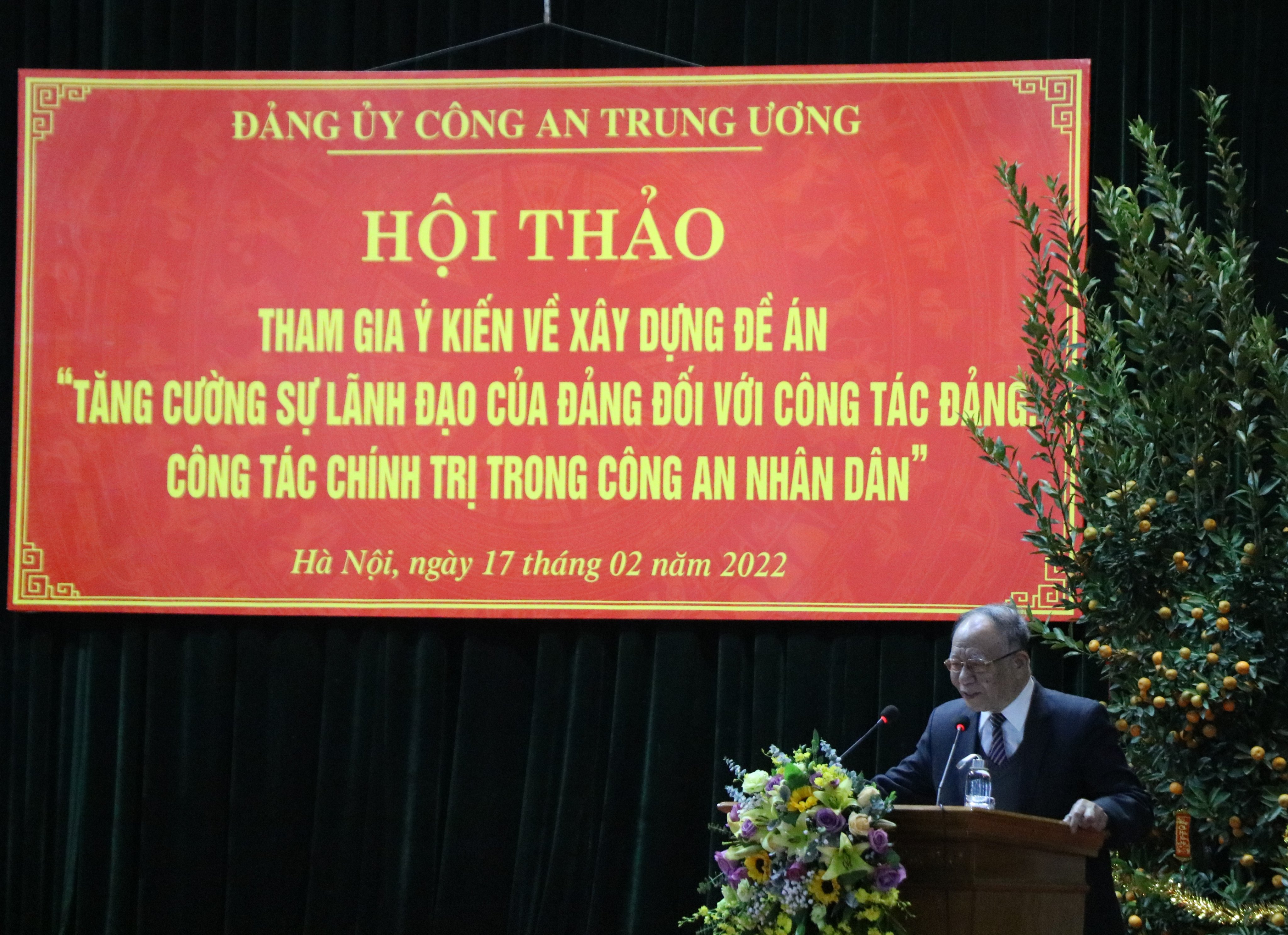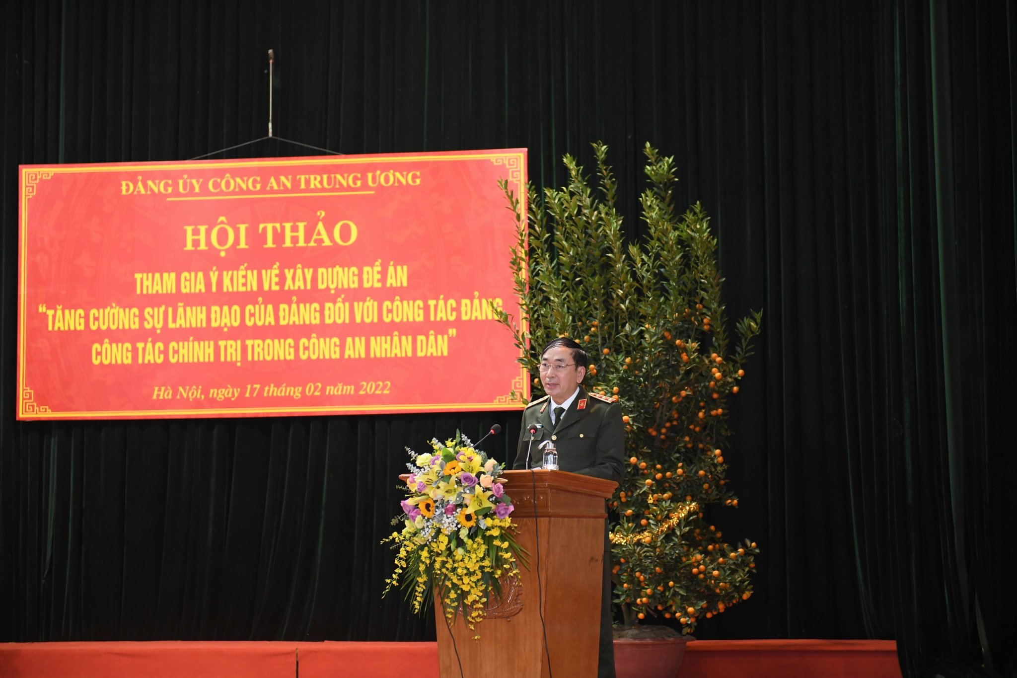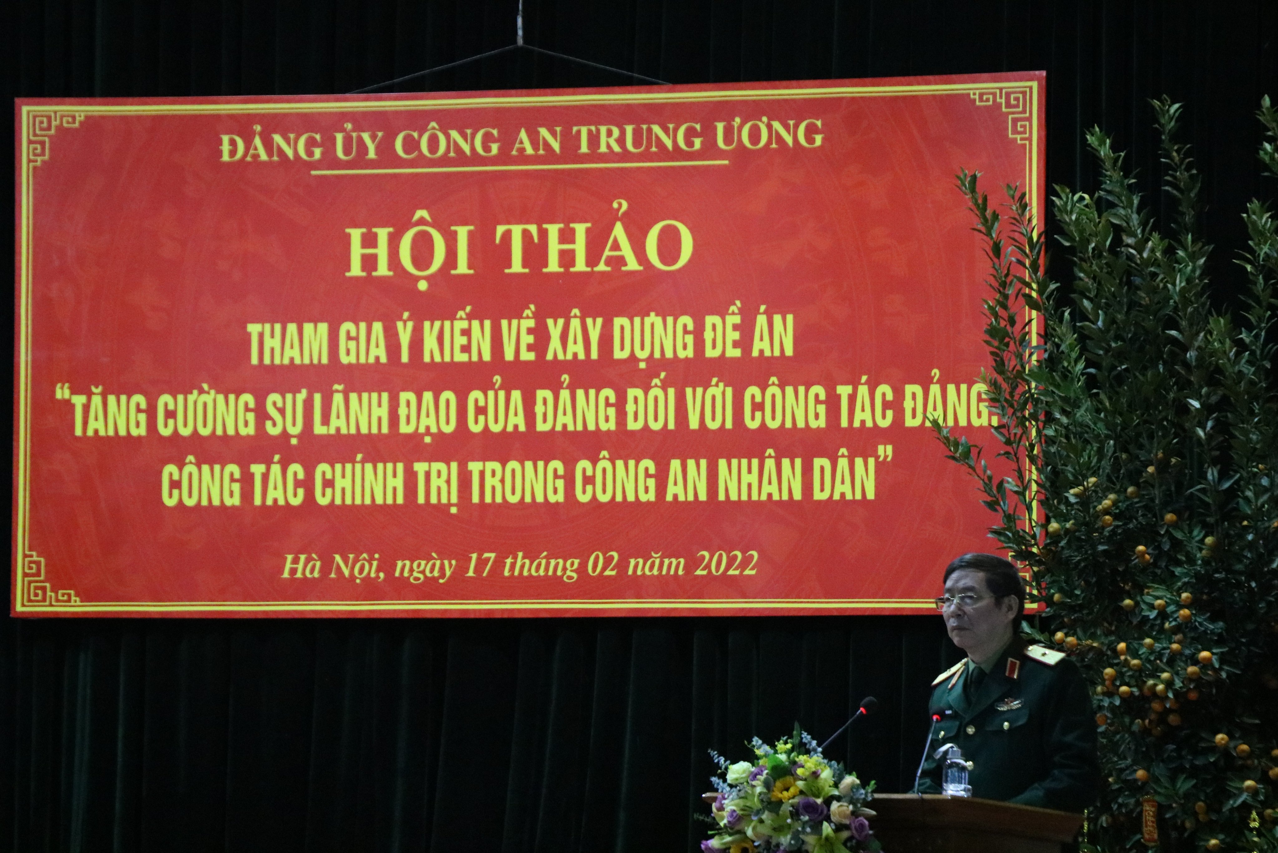 Tại Hội thảo, Ban tổ chức đã được nghe 10 ý kiến tham luận của các chuyên gia, nhà khoa học, các đồng chí đại biểu đại diện cho các cơ quan chức năng có nhiệm vụ liên quan tham gia ý kiến đối với các văn bản: Dự thảo Đề án; Dự thảo tờ trình; Dự thảo Chỉ thị của Bộ Chính trị về “Tăng cường sự lãnh đạo của Đảng đối với công tác Đảng, công tác chính trị trong Công an nhân dân”. Các ý kiến phát biểu đã tiếp cận ở những góc độ khác nhau và đều đánh giá đây là một trong những đề án quan trọng, khó và cần phải xây dựng chặt chẽ cả về lý luận lẫn thực tiễn, phải có tính đột phá, khơi thông và đổi mới, hiệu quả thiết thực trong tình hình mới. Các đồng chí đại biểu đã đưa ra nhiều vấn đề nghiên cứu chuyên sâu, đánh giá toàn diện và chỉ ra những ưu, tồn tại, hạn chế, nguyên nhân, dự báo sát tình hình từ đó xác định những nhiệm vụ, giải pháp cụ thể, sát thực, hiệu quả trong thời gian tới.