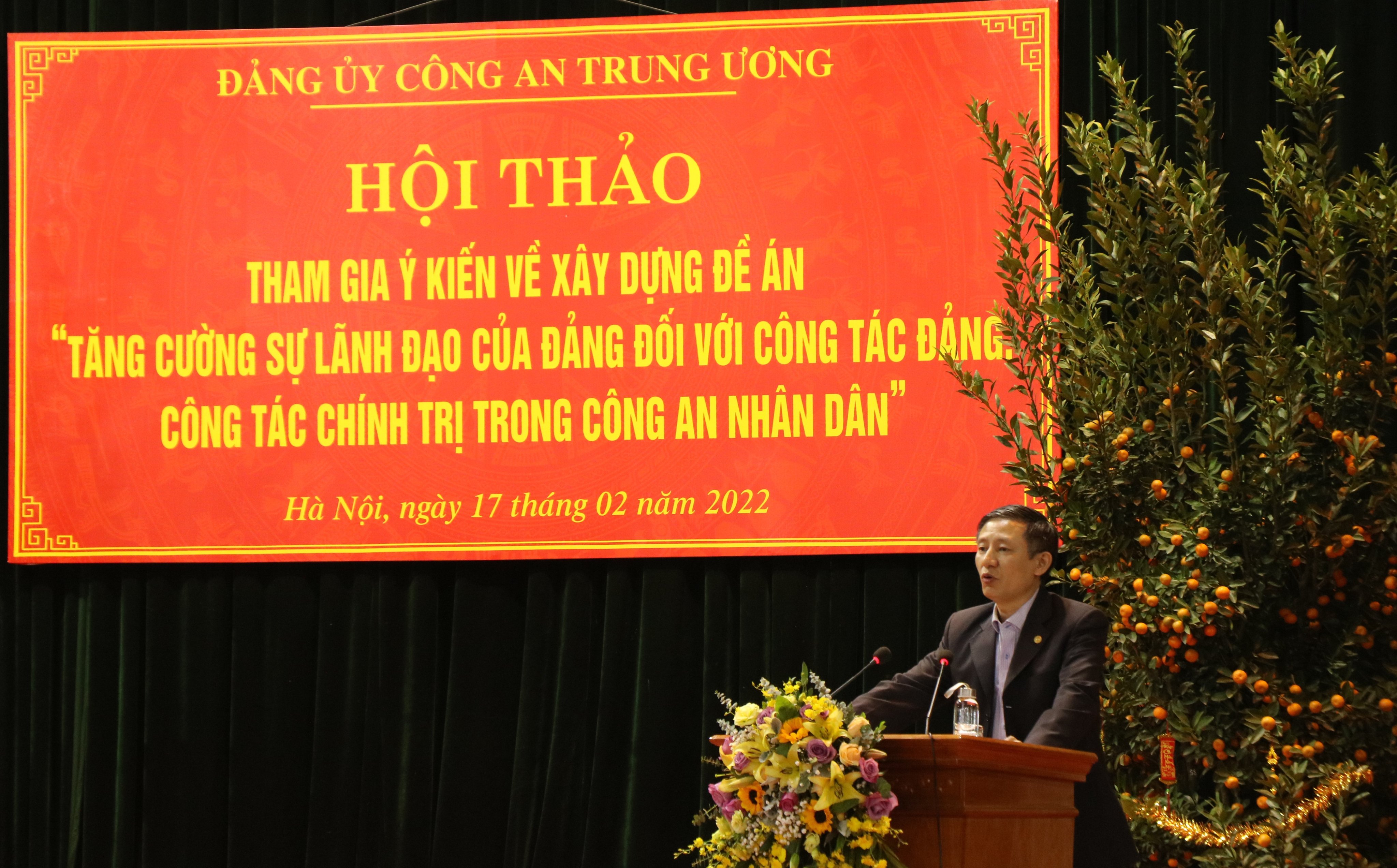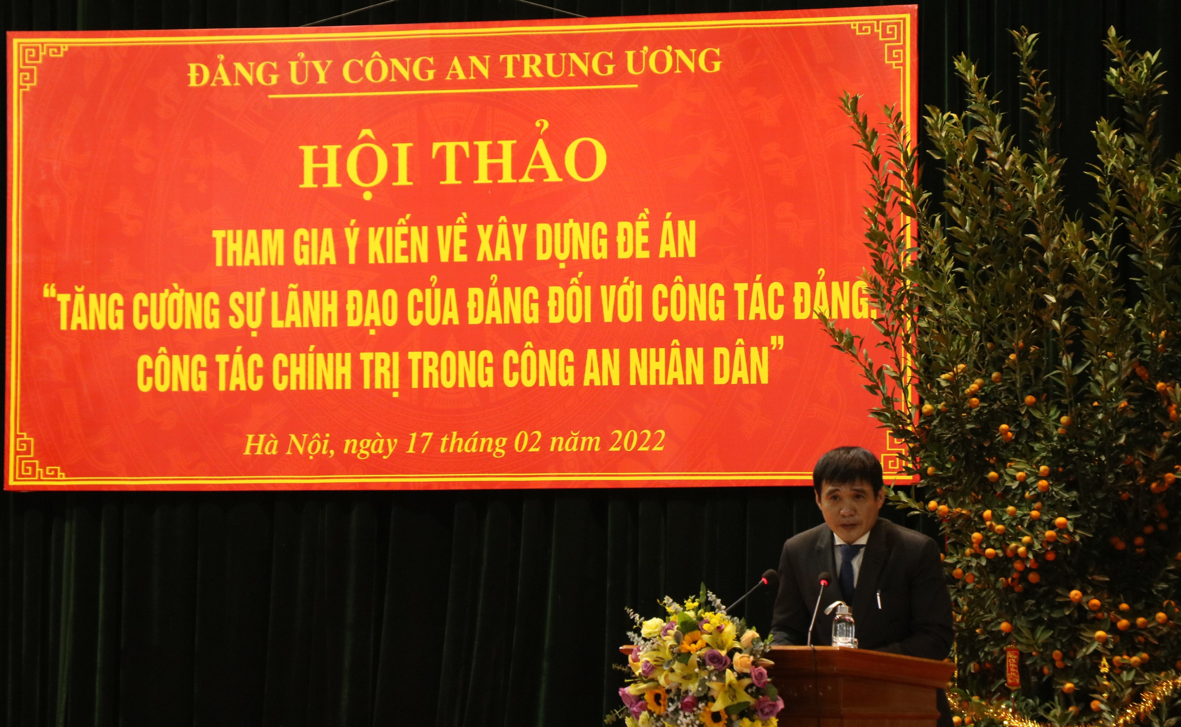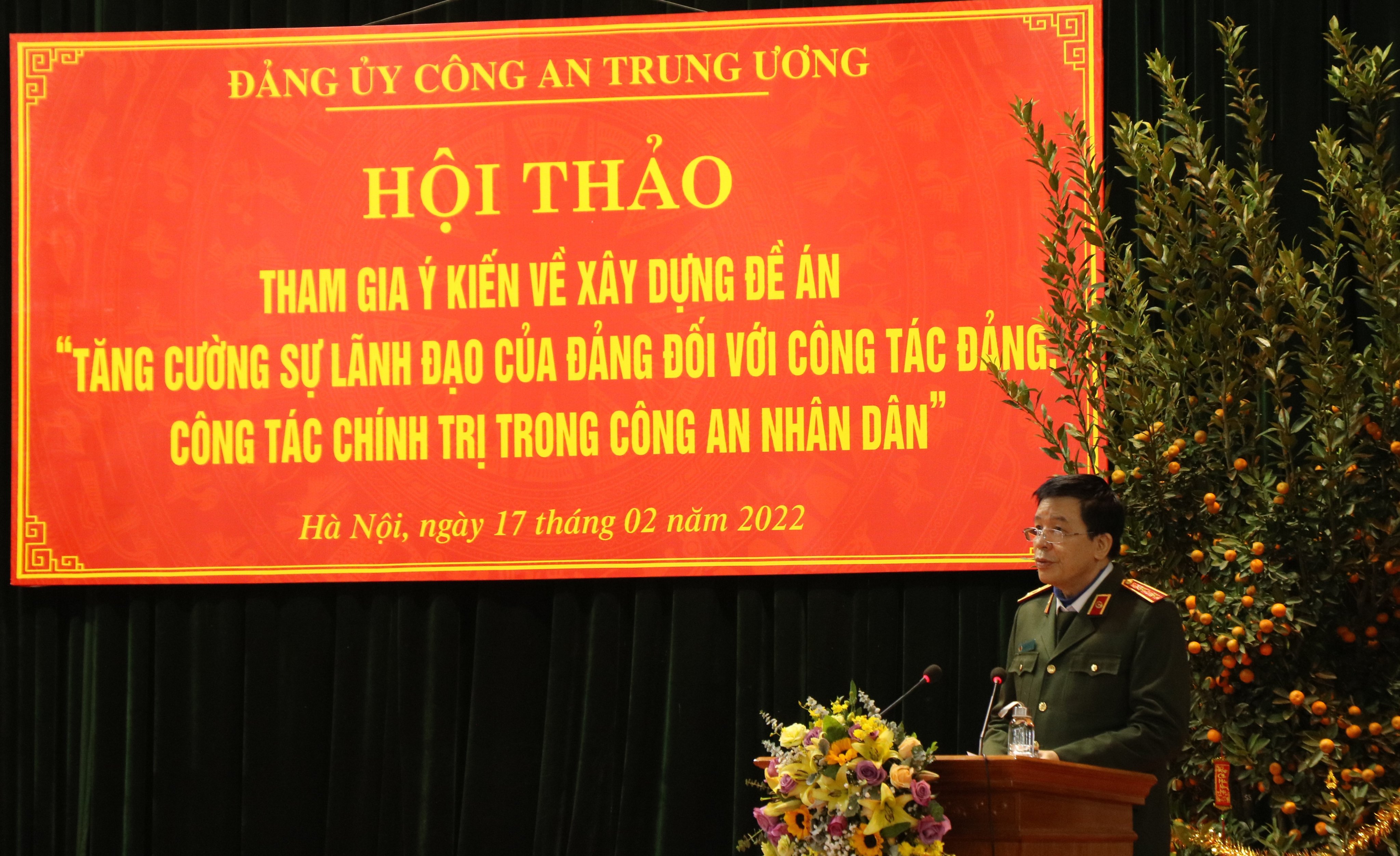Thực hiện Nghị quyết Đại hội đại biểu toàn quốc lần thứ XIII của Đảng về “Nâng cao chất lượng, hiệu lực, hiệu quả công tác đảng, công tác chính trị trong Quân đội nhân dân và Công an nhân dân đáp ứng yêu cầu xây dựng lực lượng vũ trang nhân dân vững mạnh về chính trị, làm nòng cốt trong sự nghiệp quốc phòng, an ninh, bảo vệ Tổ quốc trong tình hình mới”, Đảng ủy CATW xây dựng Đề án “Tăng cường sự lãnh đạo của Đảng đối với công tác Đảng, công tác chính trị trong Công an nhân dân”, đề án được chuẩn bị công phu với nhiều lần hội thảo ở cấp độ khác nhau. Để tiếp tục hoàn thiện đề án, ngày 17/02/2022, tại Học viện Chính trị CAND, Đảng ủy CATW tổ chức Hội thảo đóng góp ý kiến trực tiếp vào dự thảo Đề án để hoàn thiện trình Bộ Chính trị phê duyệt, ban hành. Đồng chí Thượng tướng, PGS.TS Trần Quốc Tỏ, Ủy viên Trung ương Đảng, Phó Bí thư Đảng ủy CATW, Thứ trưởng Bộ Công an chủ trì Hội thảo.