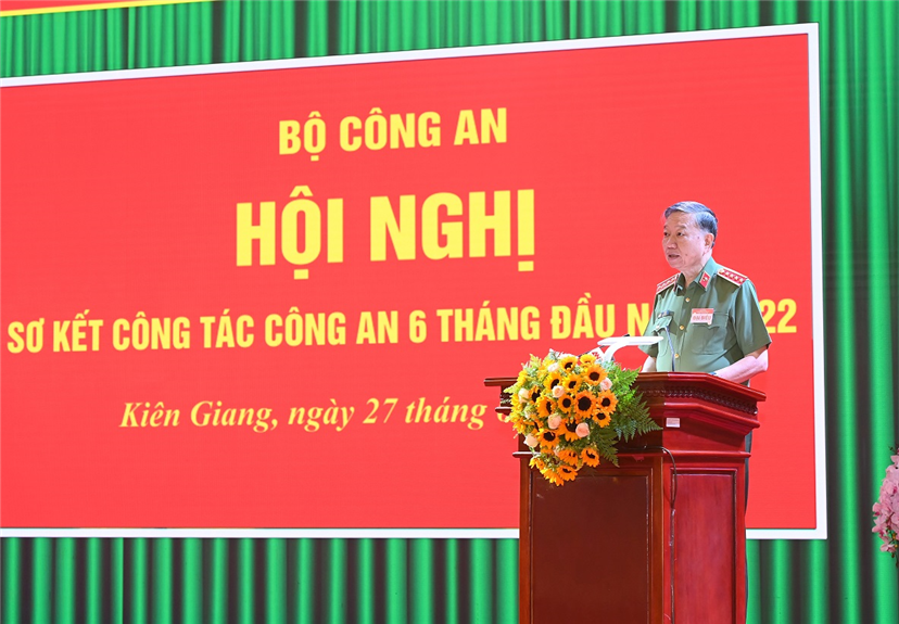 Phát biểu khai mạc Hội nghị, Bộ trưởng Tô Lâm nhấn mạnh, Hội nghị sơ kết công tác công an 6 tháng đầu năm 2022 diễn ra trong bối cảnh toàn Đảng, toàn dân và toàn quân ta đang nỗ lực phấn đấu thực hiện thắng lợi Nghị quyết Đại hội lần thứ XIII của Đảng, các chủ trương, Chỉ thị, Nghị quyết của Bộ Chính trị, Ban Bí thư, Ban Chấp hành Trung ương Đảng, Quốc hội, Chính phủ trên các lĩnh vực kinh tế, văn hóa, xã hội, quốc phòng, an ninh, đối ngoại.