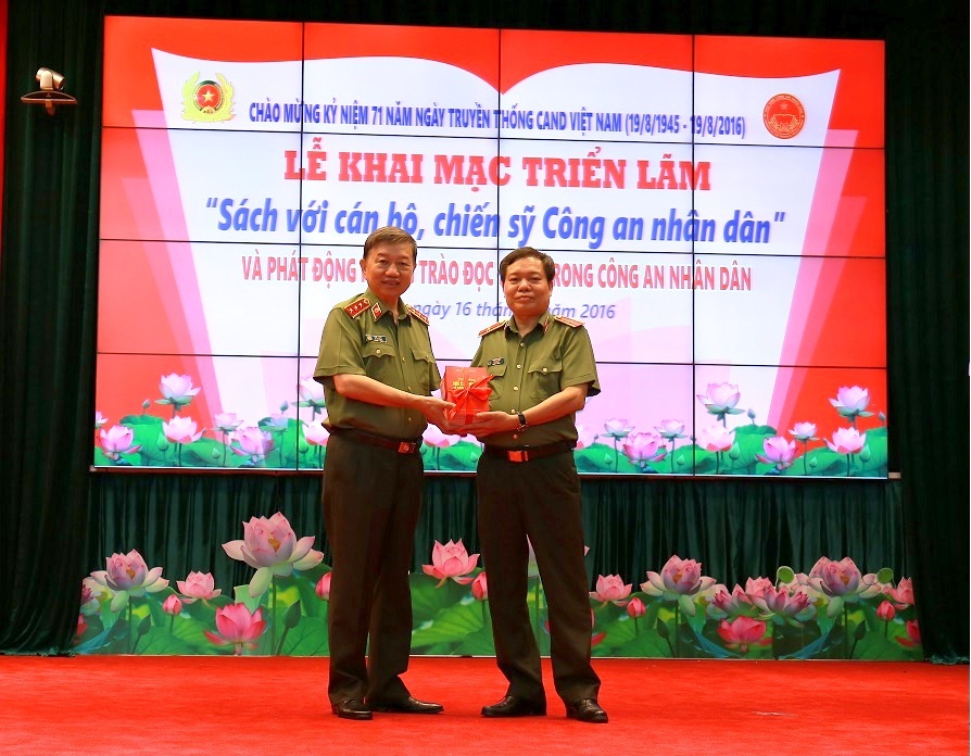 Bộ trưởng Tô Lâm tặng sách cho Thư viện CAND.