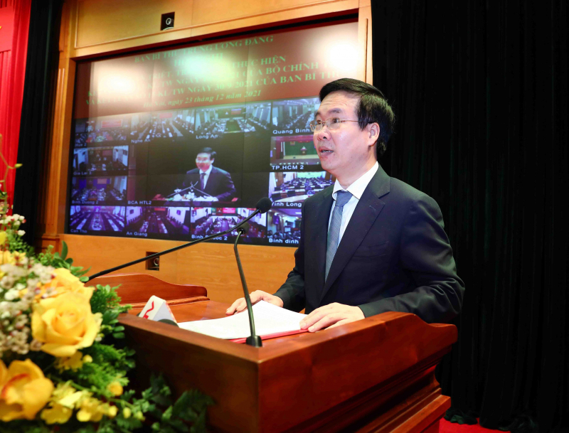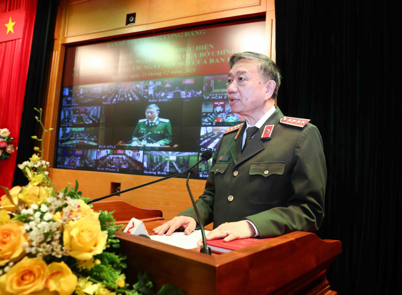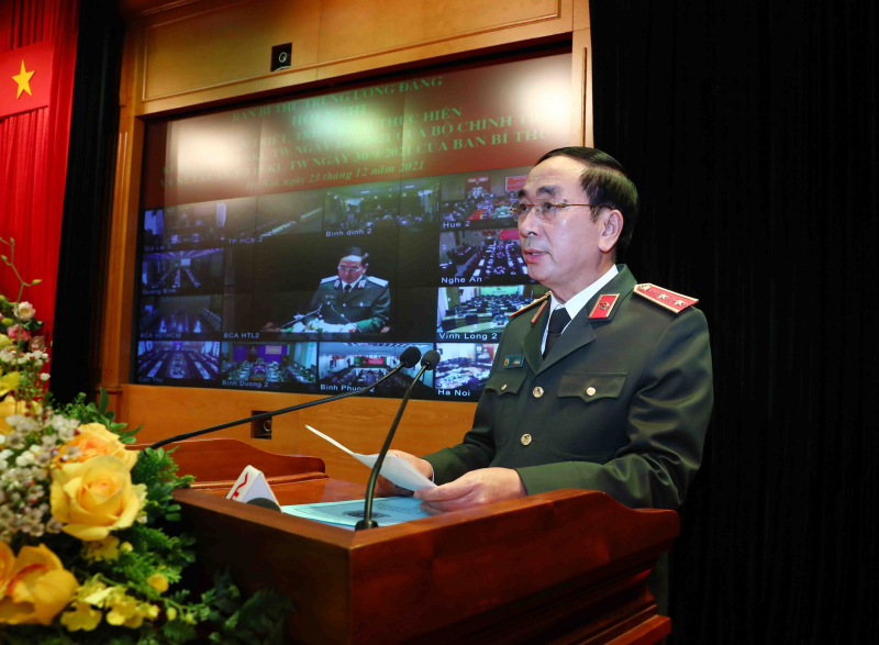 Ngày 23/12, Đảng ủy Công an Trung ương, Bộ Công an chủ trì, tham mưu Ban Bí thư tổ chức Hội nghị trực tuyến để quán triệt, triển khai thực hiện Kết luận số 13-KL/TW ngày 16/8/2021 của Bộ Chính trị về tiếp tục thực hiện Chỉ thị số 48-CT/TW của Bộ Chính trị (khóa X) về tăng cường sự lãnh đạo của Đảng đối với công tác phòng, chống tội phạm (PCTP) trong tình hình mới và Kết luận số 15-CT/TW ngày 30/9/2021 của Ban Bí thư về tiếp tục đẩy mạnh thực hiện Chỉ thị số 46-CT/TW của Bộ Chính trị (khóa XI) về công tác bảo đảm an ninh, trật tự (ANTT) trong tình hình mới. Đồng chí Võ Văn Thưởng, Ủy viên Bộ Chính trị, Thường trực Ban Bí thư Trung ương Đảng; Đại tướng Tô Lâm, Ủy viên Bộ Chính trị, Bí thư Đảng ủy Công an Trung ương, Bộ trưởng Bộ Công an đồng chủ trì Hội nghị.