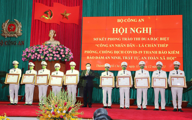 Đặc biệt, với tinh thần thần tốc, sáng tạo, không ngại khó, ngại khổ, làm việc không quản ngày đêm, toàn lực lượng CAND đã hoàn thành xuất sắc, vượt chỉ tiêu đề ra về công tác bảo vệ ANTT và công tác phòng, chống dịch bệnh COVID-19; Tiêm phủ vaccine, bảo vệ cơ sở cách ly tập trung, thu dung điều trị bệnh COVID-19 tại các cơ sở y tế trên toàn quốc và đảm bảo an sinh xã hội cho người dân trong dịch bệnh.