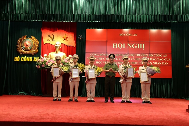 Tại Hội nghị, Bộ Công an đã công bố các quyết định về chức năng, nhiệm vụ, quyền hạn, tổ chức bộ máy, địa điểm đào tạo của các Học viện, trường đại học CAND và quyết định điều động; quyết định bổ nhiệm chức vụ Phó Giám đốc, Phó Hiệu trưởng các Học viện, trường đại học CAND đối với 5 đồng chí. Quyết định bổ nhiệm đồng chí Đại tá Nguyễn Trường Thọ, Trưởng Khoa An ninh nội bộ, Học viện ANND giữ chức Phó Giám đốc Học viện ANND và các quyết định điều động đồng chí Đại tá Nguyễn Như Lôi, Phó Hiệu trưởng Trường Trung cấp Cảnh sát vũ trang giữ chức vụ Phó Giám đốc Học viện Chính trị CAND; Điều động Đại tá Trần Quang Huyên, Phó Hiệu trưởng Trường Cao đẳng CSND I nhận công tác và giữ chức vụ Phó Giám đốc Học viện CSND. Quyết định điều động Đại tá Đàm Văn Thủy, Phó Hiệu trưởng Trường Cao đẳng CSND I giữ chức vụ Phó Hiệu trưởng Trường Đại học Kỹ thuật-Hậu cần CAND; Điều động đồng chí Đại tá Lã Xuân Lực, Phó Hiệu trưởng Trường Trung cấp Cảnh sát vũ trang giữ chức vụ Phó Hiệu trưởng Trường Đại học PCCC.