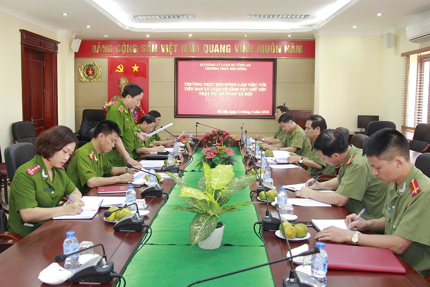 Căn cứ nhiệm vụ được phân công, Viện Chiến lược và Khoa học Công an đã tổ chức họp với các Tiểu ban, trong đó có Tiểu ban Lý luận về lĩnh vực giữ gìn TTATXH để trao đổi về thực hiện Kế hoạch công tác năm 2016 và các nhiệm vụ khác trong công tác lý luận CAND. Tiếp tục phối hợp đề xuất, sửa đổi, bổ sung, hoàn thiện quy chế của Hội đồng; xây dựng quy định về hoạt động của các Tiểu ban; xây dựng quy định về hoạt động lý luận CAND; đề xuất chế độ, chính sách đối với cán bộ làm công tác lý luận.