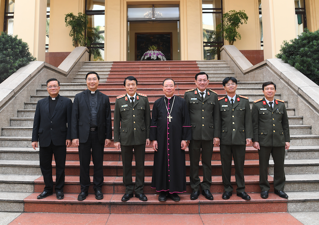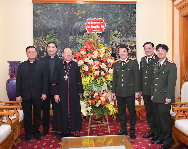 Tổng Giám mục Vũ Văn Thiên tặng lẵng hoa chúc mừng Bộ Công an.