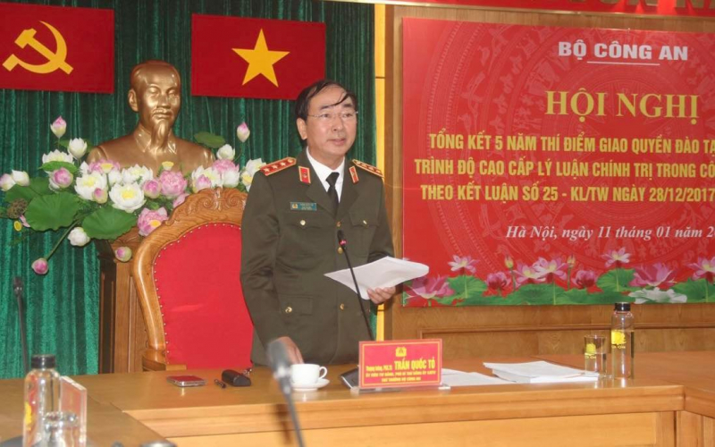 Ngày 11/1, tại Hà Nội, Bộ Công an đã tổ chức Hội nghị Tổng kết 5 năm thí điểm giao quyền đào tạo và xác nhận trình độ cao cấp lý luận chính trị trong CAND. Thượng tướng, PGS.TS Trần Quốc Tỏ, Ủy viên Trung ương Đảng, Thứ trưởng Bộ Công an dự chỉ đạo và chủ trì hội nghị.