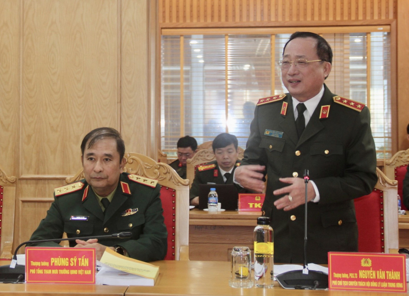 Thượng tướng Nguyễn Văn Thành, Phó Chủ tịch chuyên trách Hội đồng Lý luận Trung ương phát biểu tại hội nghị.