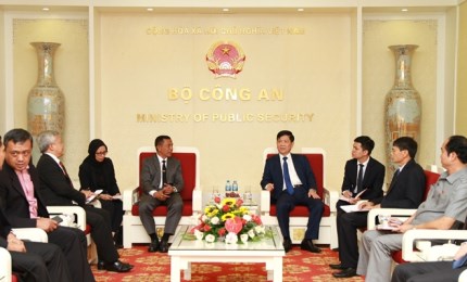 | Chủ tịch nước Trần Đại Quang; Bộ trưởng Tô Lâm cùng các đại biểu trao đổi bên lề Hội nghị. |