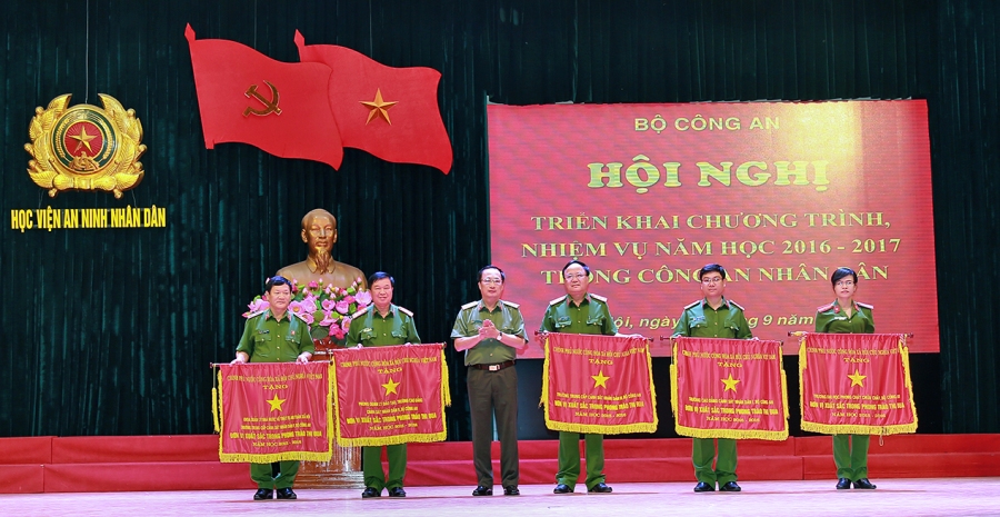 * Tại Hội nghị, thừa ủy quyền của Thủ tướng Chính phủ, Thứ trưởng Nguyễn Văn Thành đã trao Cờ thi đua xuất sắc của Chính phủ cho các đơn vị trong phong trào thi đua năm học 2015 - 2016; Cờ thi đua xuất sắc của Bộ Giáo dục và Đào tạo và Bộ Công an cho 10 đơn vị dẫn đầu phong trào thi đua “Vì an ninh Tổ quốc” năm 2015 - 2016…/.