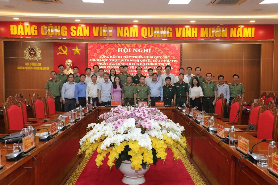 Ngày 06/01/2023, tại Trường Đại học An ninh nhân dân đã diễn ra Hội nghị sơ kết 01 năm triển khai Quy chế phối hợp thực hiện Nghị quyết số 35-NQ/TW, ngày 22/10/2018 của Bộ Chính trị về “Tăng cường bảo vệ nền tảng tư tưởng của Đảng, đấu tranh phản bác các quan điểm sai trái, thù địch trong tình hình mới”. Hội nghị do đồng chí Thiếu tướng, TS. Đoàn Minh Lý, Bí thư Đảng ủy, Hiệu trưởng Nhà trường; đồng chí Trung tướng, PGS, TS. Phan Xuân Tuy, Bí thư Đảng ủy, Giám đốc Học viện Chính trị Công an nhân dân; Thành viên Ban chỉ đạo 35 Bộ Công an và đồng chí PGS, TS. Nguyễn Quốc Dũng, Ủy viên Ban Thường vụ Đảng ủy Học viện Chính trị quốc gia Hồ Chí Minh; Bí thư Đảng ủy, Giám đốc Học viện Chính trị Khu vực II; Thành viên Hội đồng Lý luận Trung ương; Trưởng Ban Chỉ đạo 35 Học viện Chính trị Khu vực II đồng chủ trì. Tham dự Hội nghị có các đồng chí trong Đảng ủy, Ban Giám hiệu Nhà trường, lãnh đạo các Khoa, Phòng, Trung tâm, Tổ chức quần chúng thuộc Trường Đại học An ninh nhân dân cùng các đại biểu đại diện Ban Chỉ đạo 35 và đồng chí chuyên trách tham mưu thực hiện Nghị quyết 35 của các đơn vị đã ký kết Quy chế phối hợp.