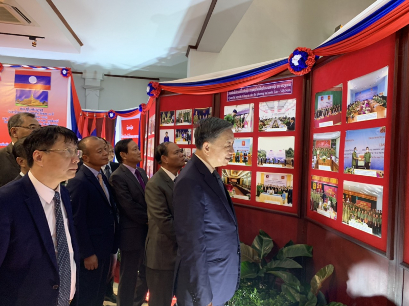 * Trong chương trình làm việc, sáng cùng ngày, Bộ trưởng Tô Lâm cùng Đoàn đại biểu cấp cao Bộ Công an Việt Nam đã dự Triển lãm ảnh “Mối quan hệ hợp tác giữa Bộ Công an Lào và Bộ Công an Việt Nam 2022”.