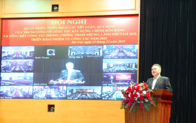 Phát biểu khai mạc hội nghị, Trung tướng Trần Quốc Tỏ, Phó Bí thư Đảng ủy, Chủ nhiệm UBKT Đảng ủy Công an Trung ương, Thứ trưởng Bộ Công an nêu rõ, ngày 9/12 vừa qua, Bộ Chính trị đã tổ chức Hội nghị trực tuyến cán bộ toàn quốc quán triệt, triển khai thực hiện Kết luận số 21 về đẩy mạnh xây dựng, chỉnh đốn Đảng và hệ thống chính trị; kiên quyết ngăn chặn, đẩy lùi, xử lý nghiêm cán bộ, đảng viên suy thoái về tư tưởng chính trị, đạo đức, lối sống, những biểu hiện "tự diễn biến", "tự chuyển hóa" trong nội bộ và Quy định số 37 về những điều đảng viên không được làm.
