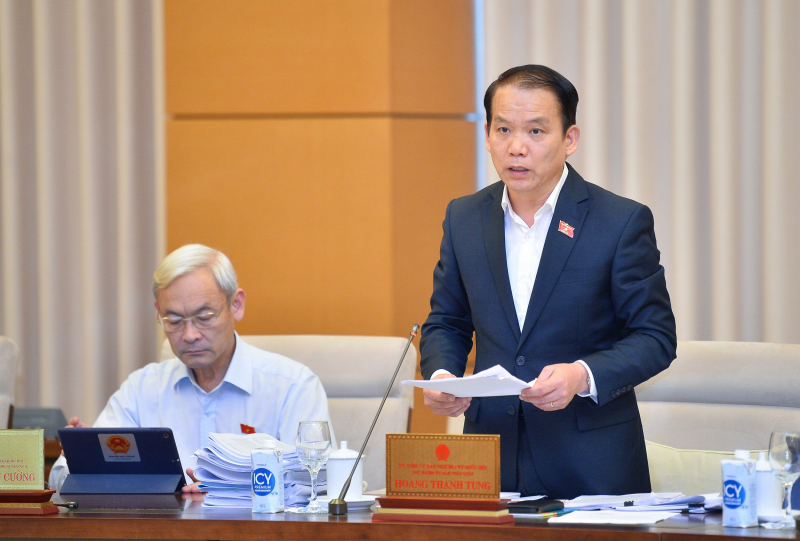 Chủ nhiệm Uỷ ban Pháp luật Hoàng Thanh Tùng trình bày báo cáo thẩm tra.