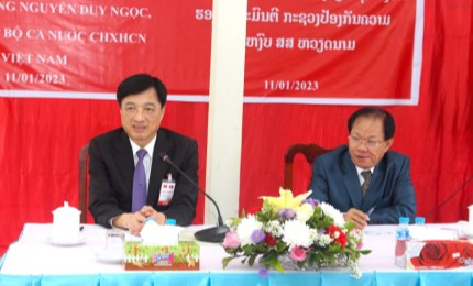 Thứ trưởng Nguyễn Duy Ngọc thăm, tặng quà Công an cụm bản Vangxai