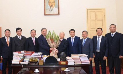 Nhân dịp Tết cổ truyền Quý Mão 2023, ngày 19/1 tại Hà Nội, Ban Thường vụ Đảng ủy Công an Trung ương, lãnh đạo Bộ Công an do Đại tướng Tô Lâm, Ủy viên Bộ Chính trị, Bí thư Đảng ủy Công an Trung ương, Bộ trưởng Bộ Công an dẫn đầu đã đến thăm, chúc Tết Tổng Bí thư Nguyễn Phú Trọng.