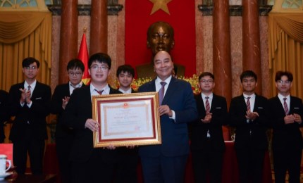 Tôi mong những nhân tài trẻ có khát khao chiếm lĩnh những đỉnh cao trí tuệ để phục vụ sự phát triển của Việt Nam - Chủ tịch nước nói với các học sinh đoạt giải Olympic quốc tế.