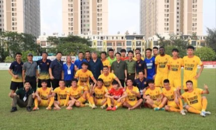 Đại tướng Tô Lâm xuống sân chúc mừng CLB bóng đá CAND