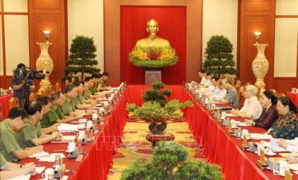 Sáng nay (21/9), tại trụ sở Trung ương Đảng, tập thể Bộ Chính trị đã làm việc với Ban Thường vụ Đảng ủy Công an Trung ương, cho ý kiến về dự thảo các văn kiện và công tác nhân sự trình Đại hội Đảng bộ Công an lần thứ VII, nhiệm kỳ 2020-2025.