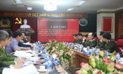 Chiều 12/3, tại Hà Nội, Bộ Công an, Ban Tổ chức Trung ương và Học viện Chính trị Quốc gia Hồ Chí Minh đã có buổi làm việc về vận dụng tiêu chuẩn trình độ trung cấp lý luận chính trị đối với cán bộ công an tham gia cấp ủy nhiệm kỳ 2020-2025.