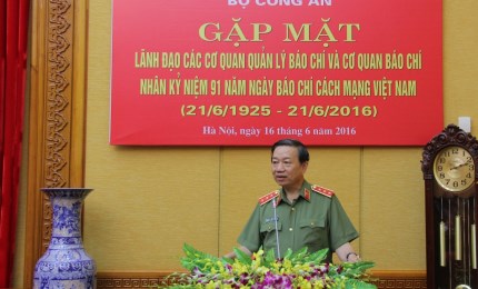Chiều 16/6/2016, tại Hà Nội, Bộ Công an tổ chức buổi gặp mặt lãnh đạo các cơ quan quản lý báo chí và cơ quan báo chí nhân kỷ niệm 91 năm Ngày báo chí cách mạng Việt Nam (21/6/1925 – 21/6/2016). Thượng tướng Tô Lâm, Uỷ viên Bộ Chính trị, Bí thư Đảng uỷ Công an Trung ương, Bộ trưởng Bộ Công an chủ trì buổi gặp mặt.