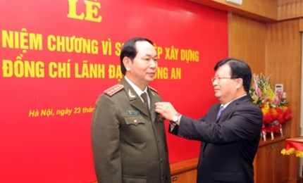 Sáng 23/11, Lễ Trao tặng Kỷ niệm chương Vì sự nghiệp Xây dựng cho các đồng chí lãnh đạo Bộ Công an do Bộ Xây dựng tổ chức diễn ra tại Hà Nội. Đại tướng Trần Đại Quang, Ủy viên Bộ Chính trị, Bộ trưởng Bộ Công an; đồng chí Trịnh Đình Dũng, Ủy viên Trung ương Đảng, Bộ trưởng Bộ Xây dựng dự buổi Lễ.