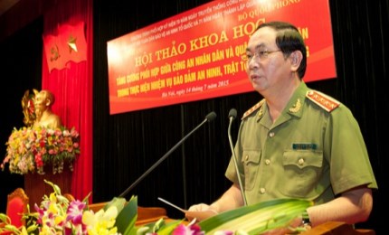 Ngày 14/7/2015, tại Hà Nội, Bộ Công an, Bộ Quốc phòng tổ chức Hội thảo khoa học “Tăng cường phối hợp giữa Công an nhân dân và Quân đội nhân dân trong thực hiện nhiệm vụ bảo đảm an ninh, trật tự và quốc phòng”. Đại tướng, GS. TS Trần Đại Quang, Ủy viên Bộ Chính trị, Bộ trưởng Bộ Công an, Chủ tịch Hội đồng lý luận Bộ Công an đến dự, chỉ đạo và khai mạc Hội thảo.