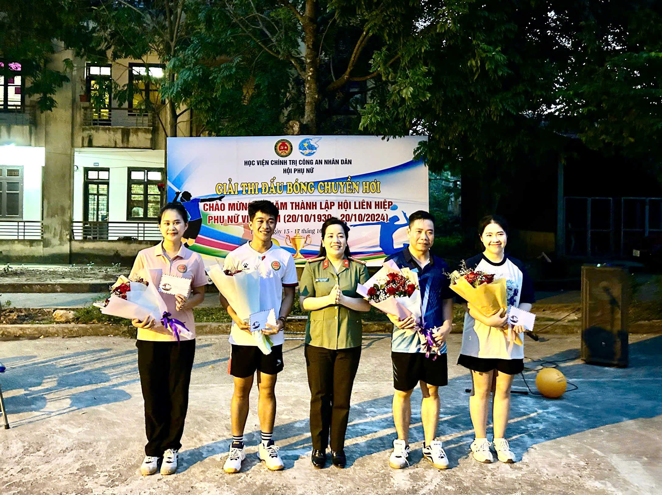 Đến dự và trao giải tại lễ bế mạc có đồng chí Đại tá, TS Tống Văn Khuông, Uỷ viên BTV Đảng uỷ, Phó Giám đốc Học viện; đồng chí Trung tá Hoàng Huy Thành, Ủy viên Ban Chấp hành Đảng bộ, Chánh Văn phòng Học viện. Cùng dự có các đồng chí trong Ban chấp hành Hội Phụ nữ Học viện và toàn thể thành viên 8 đội tham gia giải đấu năm nay.