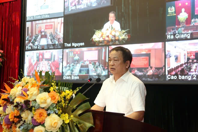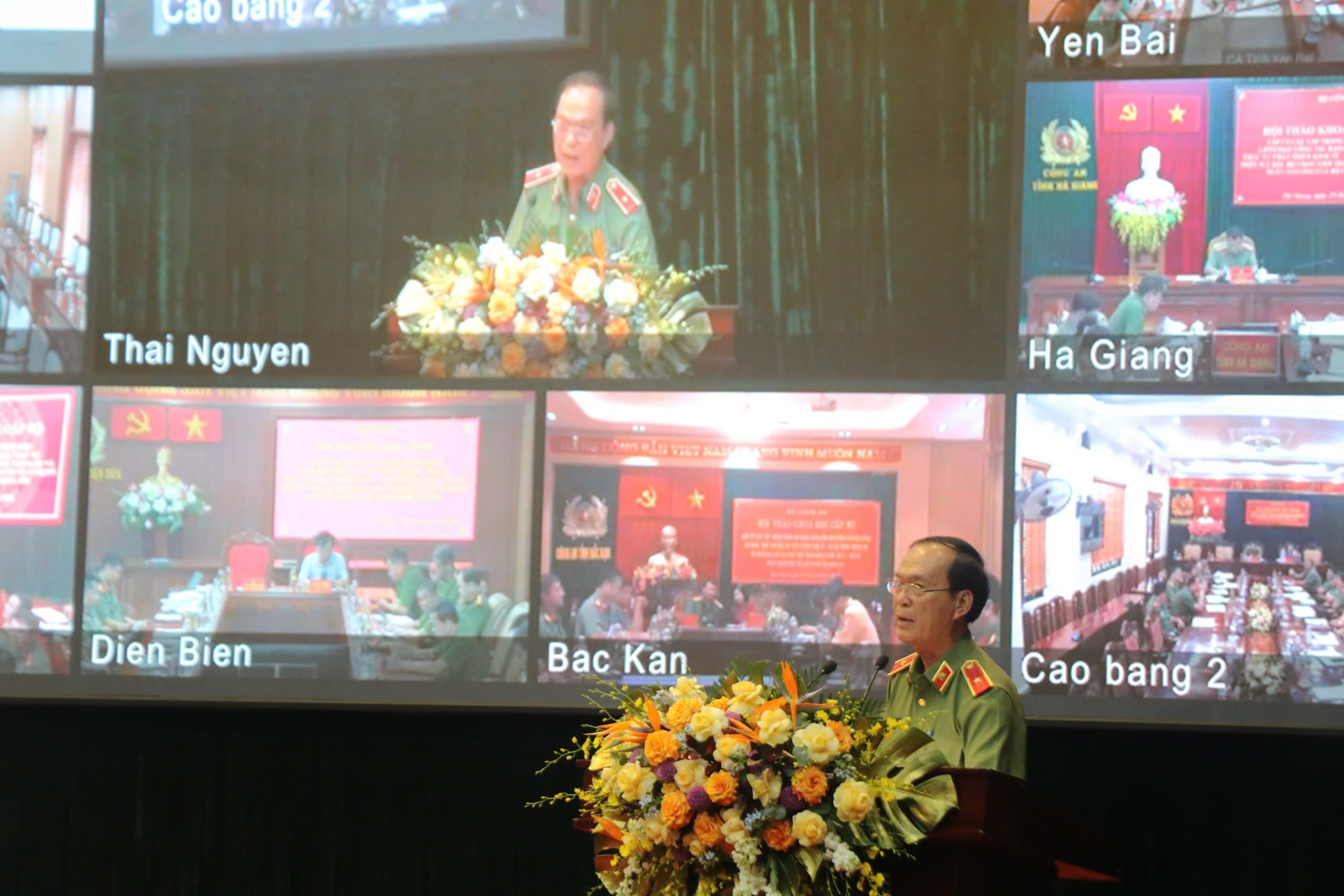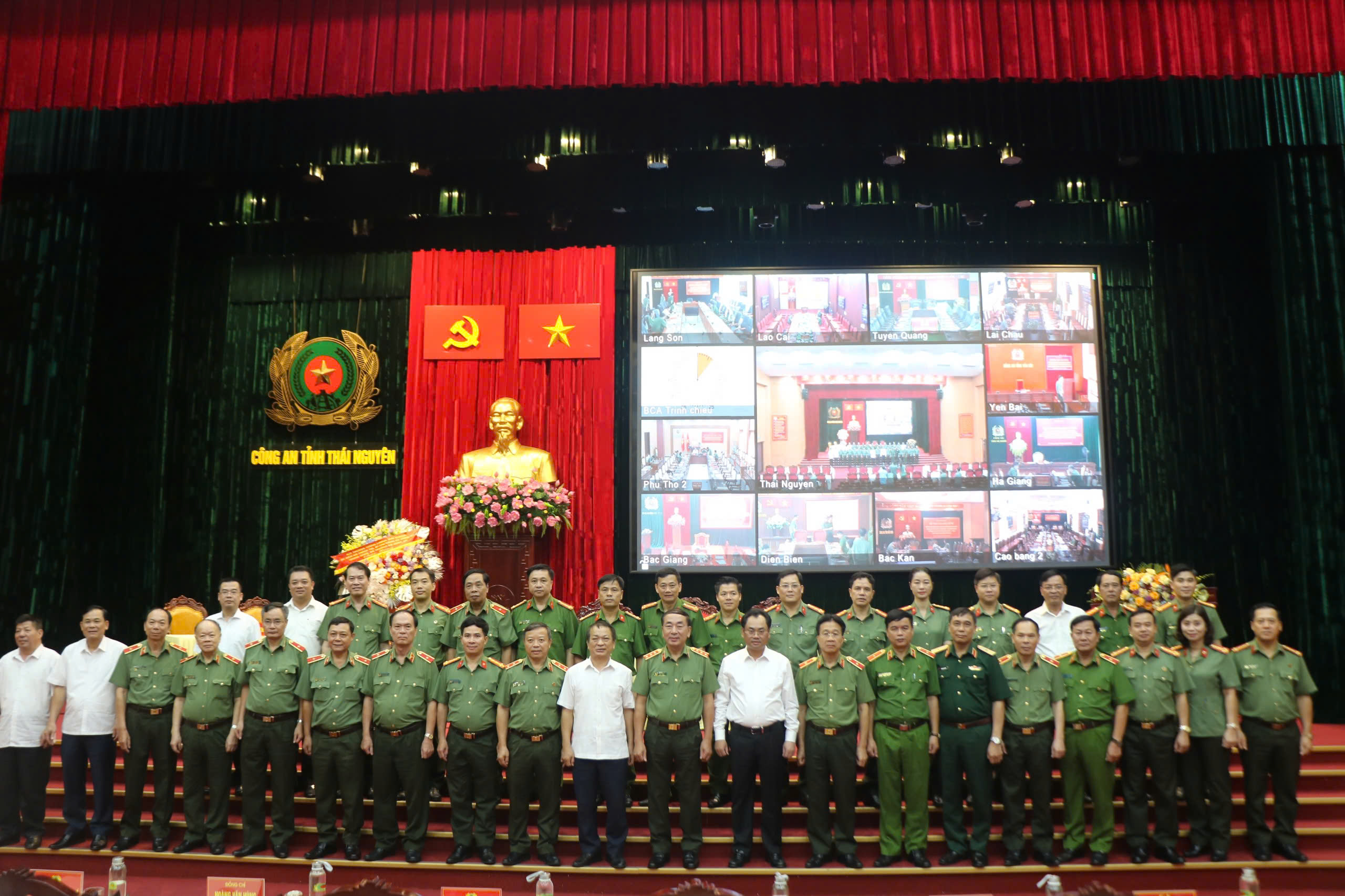 Về đại biểu tham dự tại điểm cầu Công an 13 địa phương trong vùng có: đồng chí Nguyễn Mạnh Dũng, Quyền Bí thư tỉnh ủy Hà Giang; đồng chí Vũ Mạnh Hà, Ủy viên dự khuyết Ban Chấp hành Trung ương Đảng, Phó Bí thư thường trực tỉnh ủy Lai Châu; đồng chí Lê Thị Kim Dung, Phó Bí thư thường trực tỉnh ủy, Chủ tịch Hội đồng nhân dân tỉnh Tuyên Quang; đồng chí Phương Thị Thanh, Phó Bí thư thường trực tỉnh ủy Bắc Kạn; đồng chí Vừ A Bằng, Tỉnh ủy viên, Phó Chủ tịch Ủy ban nhân dân tỉnh Điện Biên; đồng chí Lương Trọng Quỳnh, Tỉnh Ủy viên, Phó Chủ tịch Ủy ban nhân dân tỉnh Lạng Sơn; đồng chí Quách Tất Liêm, Tỉnh Ủy viên, Phó Chủ tịch Ủy ban nhân dân tỉnh Hòa Bình; đồng chí Bùi Minh Tân, Ủy viên Ban Thường vụ Tỉnh ủy, Trưởng Ban Nội chính Tỉnh ủy Sơn La cùng đại diện các sở, ban, ngành, Ban Giám đốc và các phòng chức năng Công an các tỉnh.