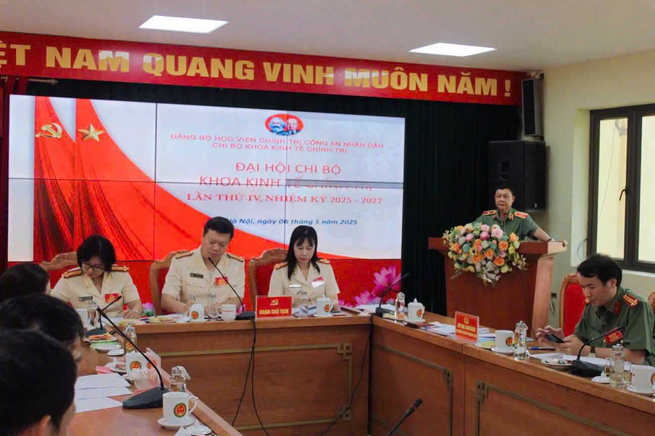 Tiếp thu ý kiến chỉ đạo của đồng chí Thiếu tướng Nguyễn Như Lôi, Phó Bí thư Đảng uỷ, Phó Giám đốc Học viện, Đại hội đã thống nhất thông qua Nghị quyết nhiệm kỳ 2025-2027, khẳng định quyết tâm phát huy kết quả đã đạt được, khắc phục những tồn tại và nâng cao năng lực lãnh đạo công tác chuyên môn và công tác xây dựng Đảng. Đại hội cũng đã đặt ra mục tiêu xây dựng Chi bộ Khoa Kinh tế chính trị trong sạch, vững mạnh, nâng cao chất lượng công tác giảng dạy và nghiên cứu khoa học.