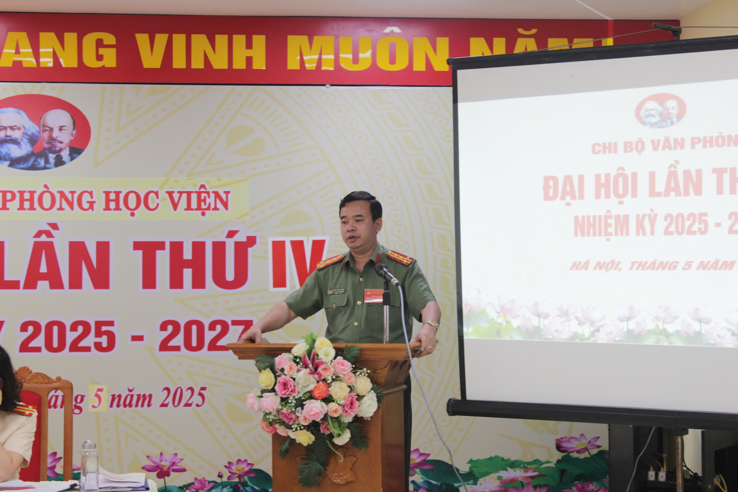 Đồng chí Tống Văn Khuông, Ủy viên Ban thường vụ Đảng ủy, Phó Giám đốc Học viện dự và phát biểu chỉ đạo tại Đại hội Chi bộ Văn phòng Học viện