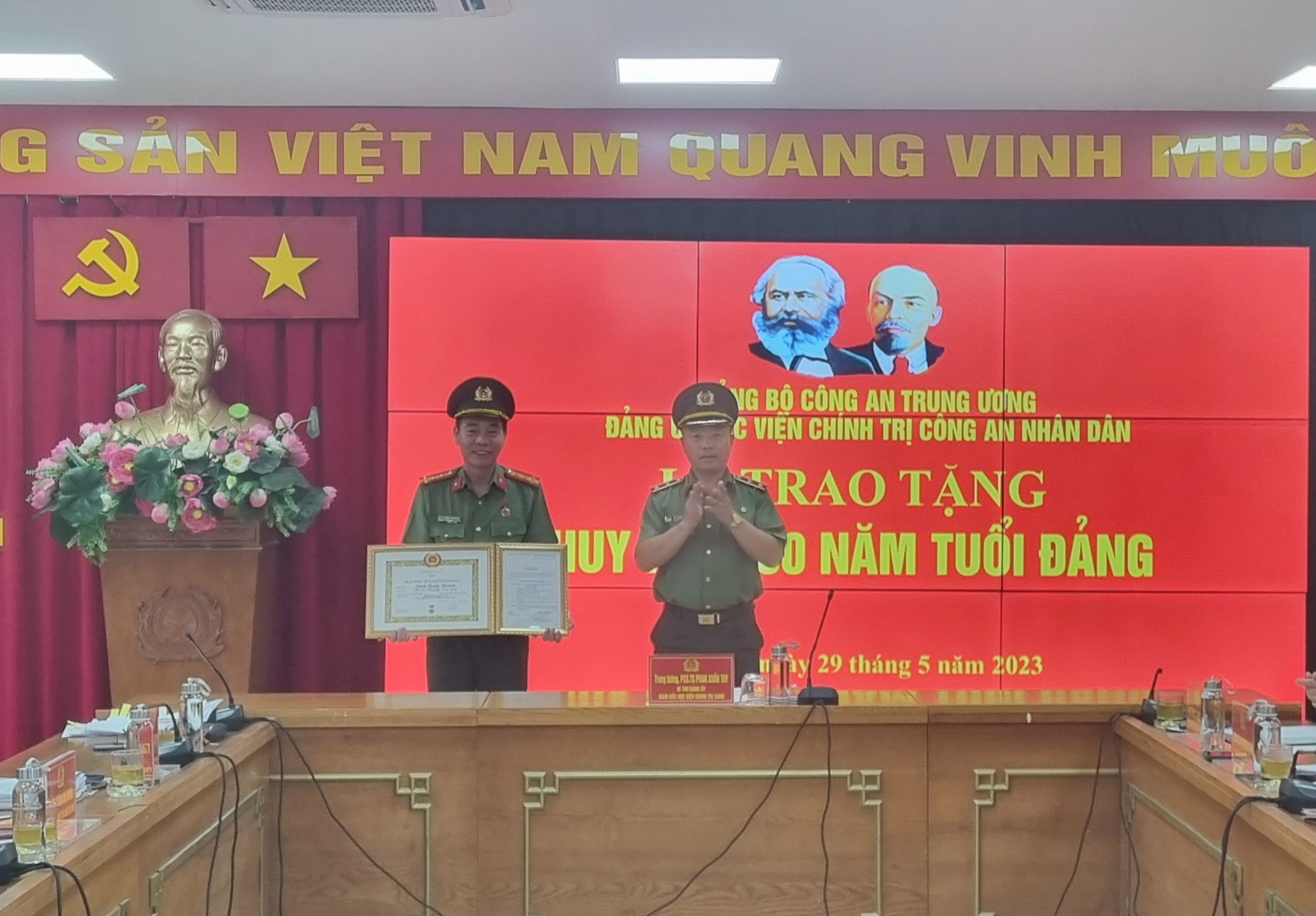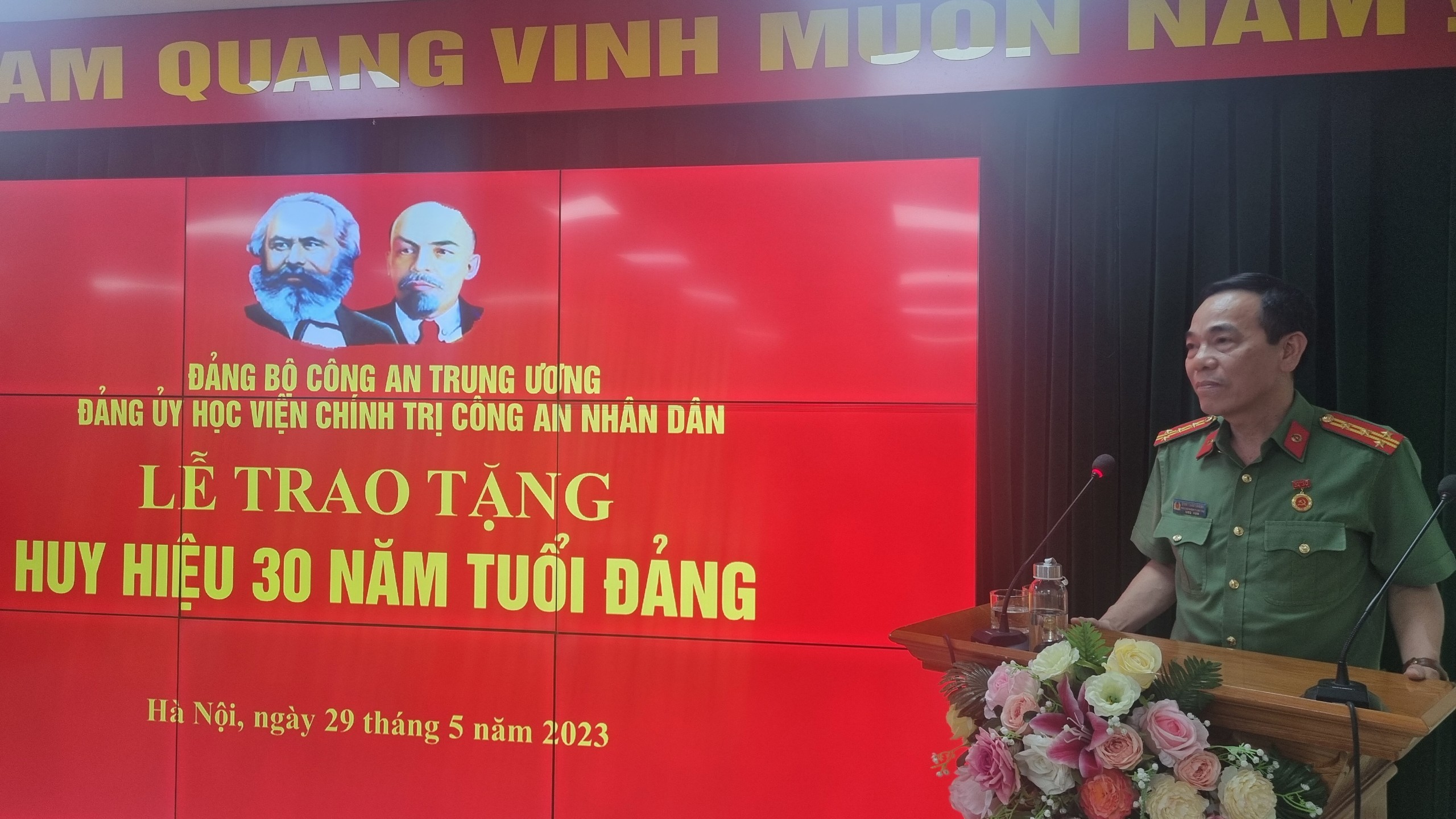 Chiều ngày 29/5/2023, Đảng ủy, Ban Giám đốc Học viện Chính trị Công an nhân dân trang trọng tổ chức Lễ trao tặng Huy hiệu 30 năm tuổi Đảng cho đồng chí Đại tá Đinh Tuấn Khánh, Ủy viên Ban chấp hành Đảng bộ, Phó Chủ nhiệm Thường trực Ủy ban Kiểm tra Đảng ủy Học viện, Chi ủy viên Chi bộ Phòng Chính trị. Đồng chí Trung tướng Phan Xuân Tuy, Bí thư Đảng ủy, Giám đốc Học viện dự, chủ trì buổi lễ. Cùng tham dự có các đồng chí trong Thường vụ Đảng ủy, Ban Giám đốc Học viện; Ban Chấp hành Đảng bộ, Ủy ban Kiểm tra Đảng ủy Học viện và đảng viên Chi bộ Phòng Chính trị.