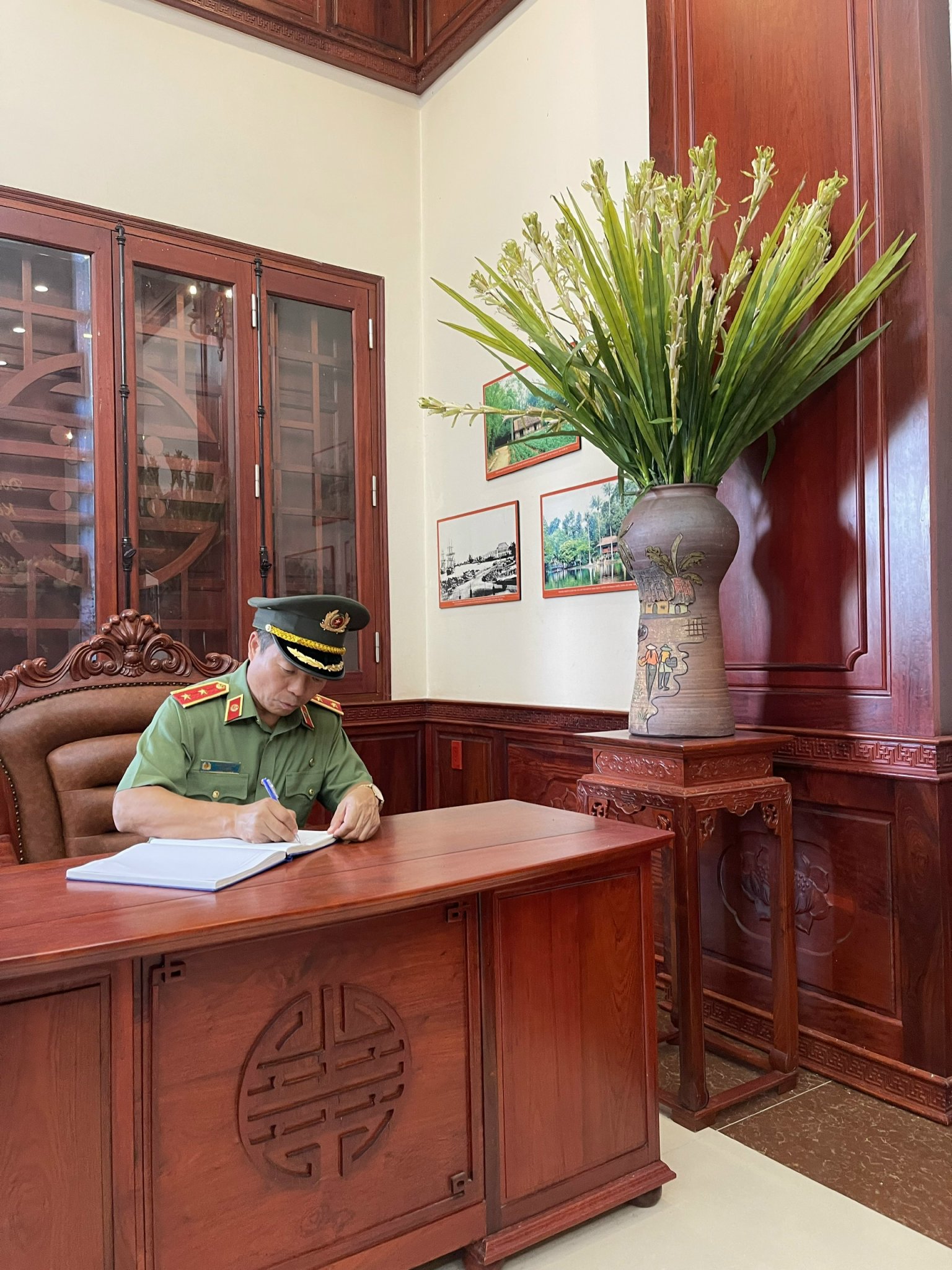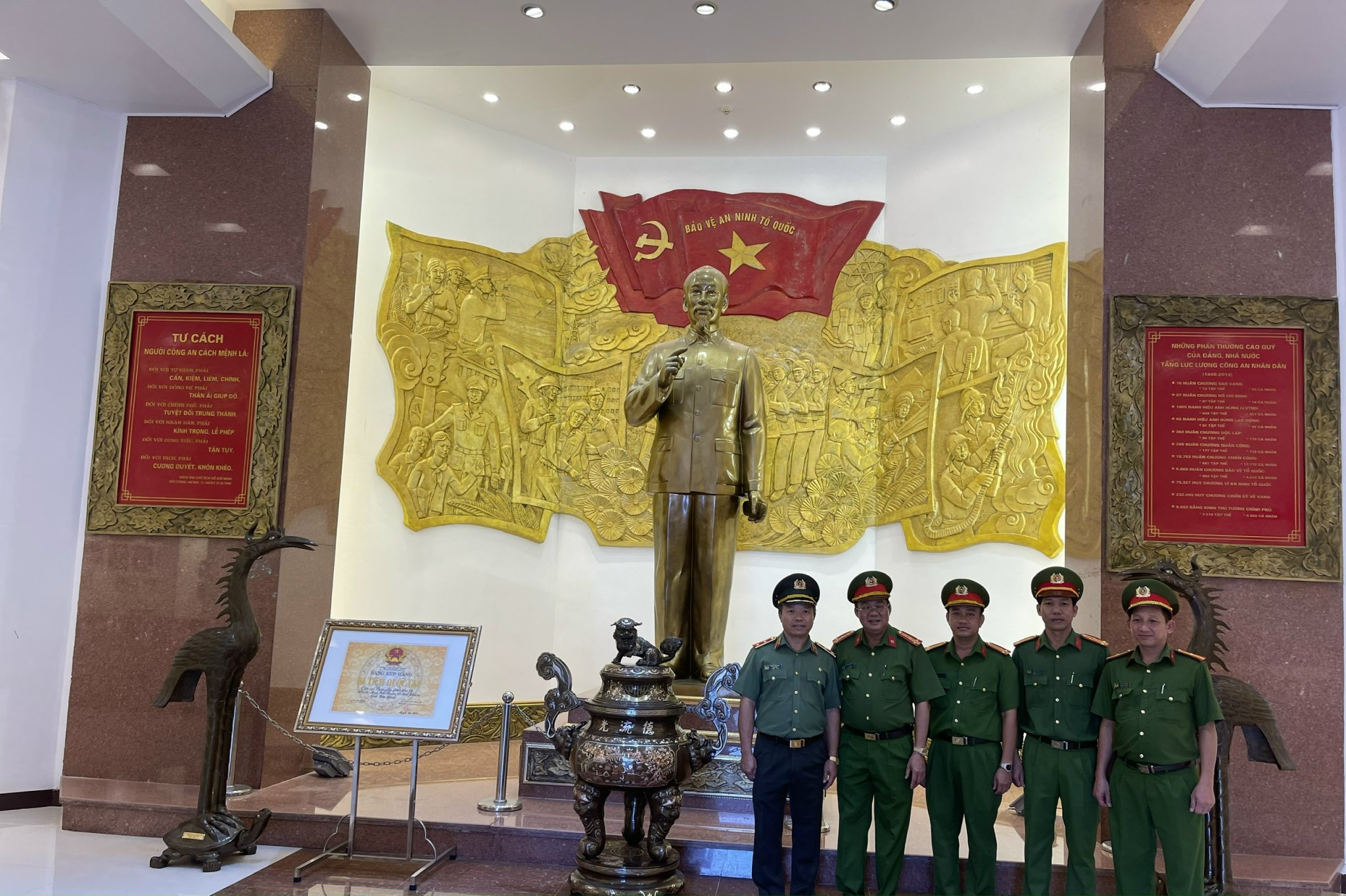 Tại đây, Đoàn công tác đã tổ chức dâng hoa, dâng hương tại Tượng đài Bảo vệ an ninh Tổ quốc, Nhà tưởng niệm Chủ tịch Hồ Chí Minh, bày tỏ sự tri ân sâu sắc đến các Anh hùng liệt sỹ CAND đã hy sinh vì sự nghiệp giải phóng dân tộc, thống nhất đất nước, giữ gìn an ninh chính trị, trật tự xã hội; thăm quan Bảo tàng CAND trong khuôn viên Khu di tích lịch sử An ninh khu IX, nơi trưng bày hiện vật và tư liệu lịch sử hào hùng, quá trình chiến đấu, xây dựng và phát triển của lực lượng CAND trong đó có những dấu ấn đậm nét và vai trò, đóng góp của lực lượng An ninh miền Nam, đặc biệt là lực lượng An ninh Khu IX và Công an các tỉnh miền Tây Nam bộ trong thời kỳ cách mạng giải phòng miền Nam, thống nhất đất nước. Trong không khí trang nghiêm này, thay mặt Đoàn công tác, tại sổ ghi cảm tưởng, đồng chí Giám đốc Học viện ghi “Thành kính biết ơn công lao vĩ đại của Chủ tịch Hồ Chí Minh và các anh hùng liệt sĩ đã anh dũng chiến đấu, hi sinh vì độc lập, tự do, hạnh phúc của Tổ quốc và của Nhân dân. Toàn thể lãnh đạo, cán bộ, giảng viên và các thế hệ học viên của Học viện nguyện đoàn kết, thống nhất, nỗ lực, tận tâm công tác, tu dưỡng, rèn luyện theo gương Bác Hồ vĩ đại, xứng đáng với truyền thống anh hùng của CAND Việt Nam. Ra sức phấn đấu xây dựng lực lượng CAND thật sự trong sạch, vững mạnh, chính quy, tinh nhuệ, hiện đại, đáp ứng yêu cầu, nhiệm vụ trong tình hình mới”.
