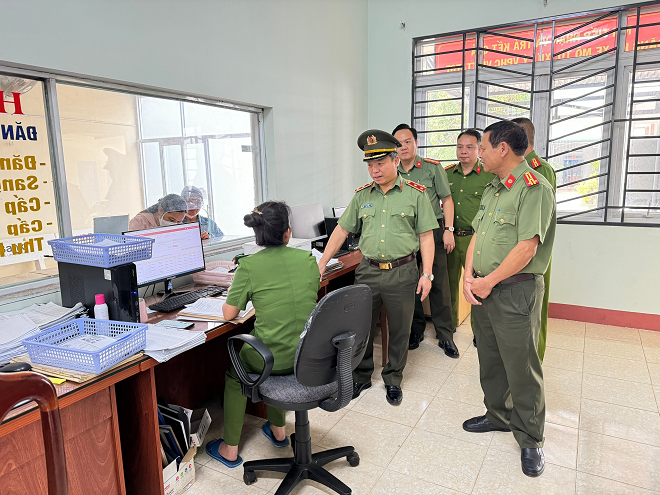 Đồng chí Trung tướng, PGS.TS Phan Xuân Tuy, Bí Thư Đảng ủy, Giám đốc Học viện thăm trụ sở làm việc của Công an xã Ea Tiêu, huyện Cư Kuin
