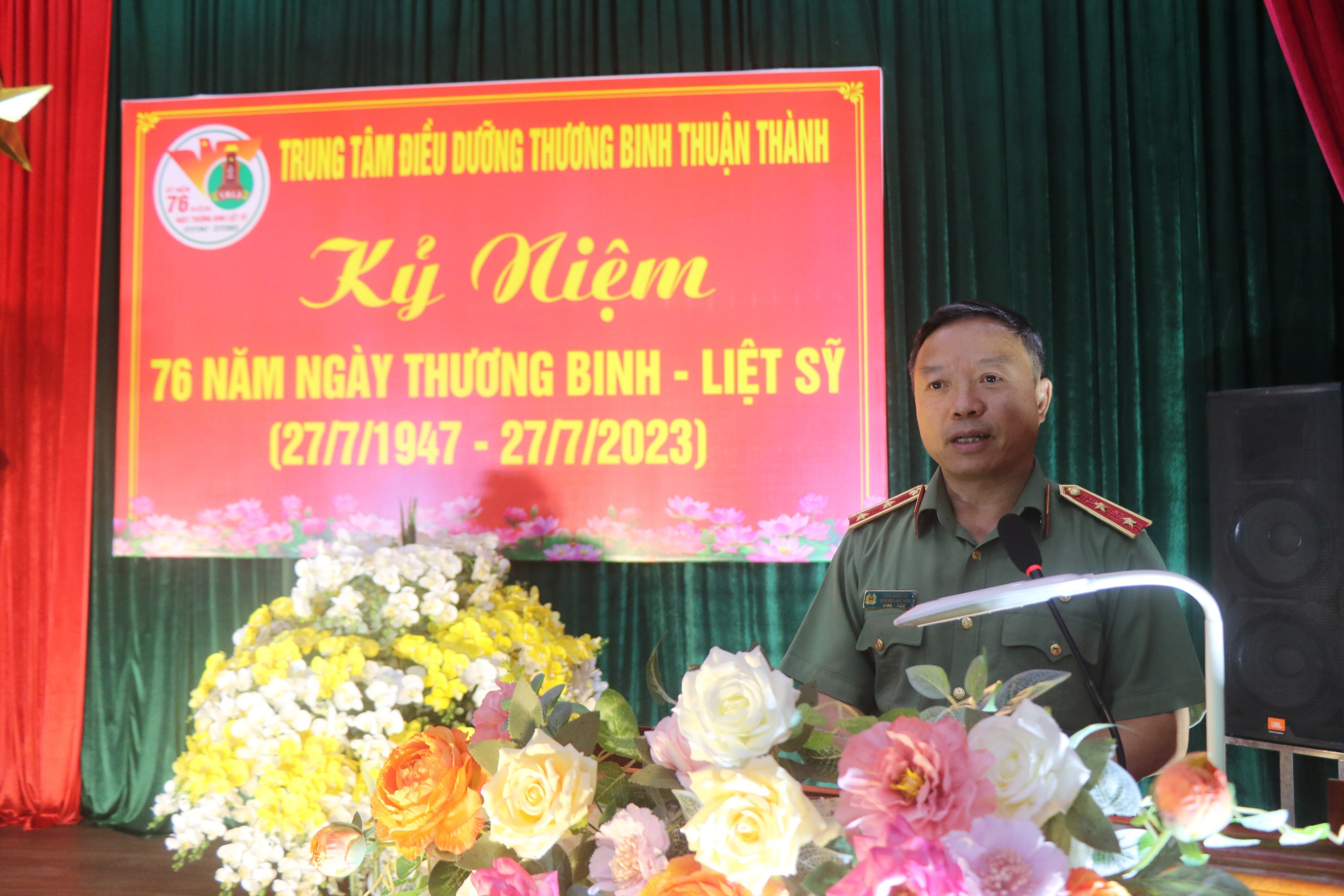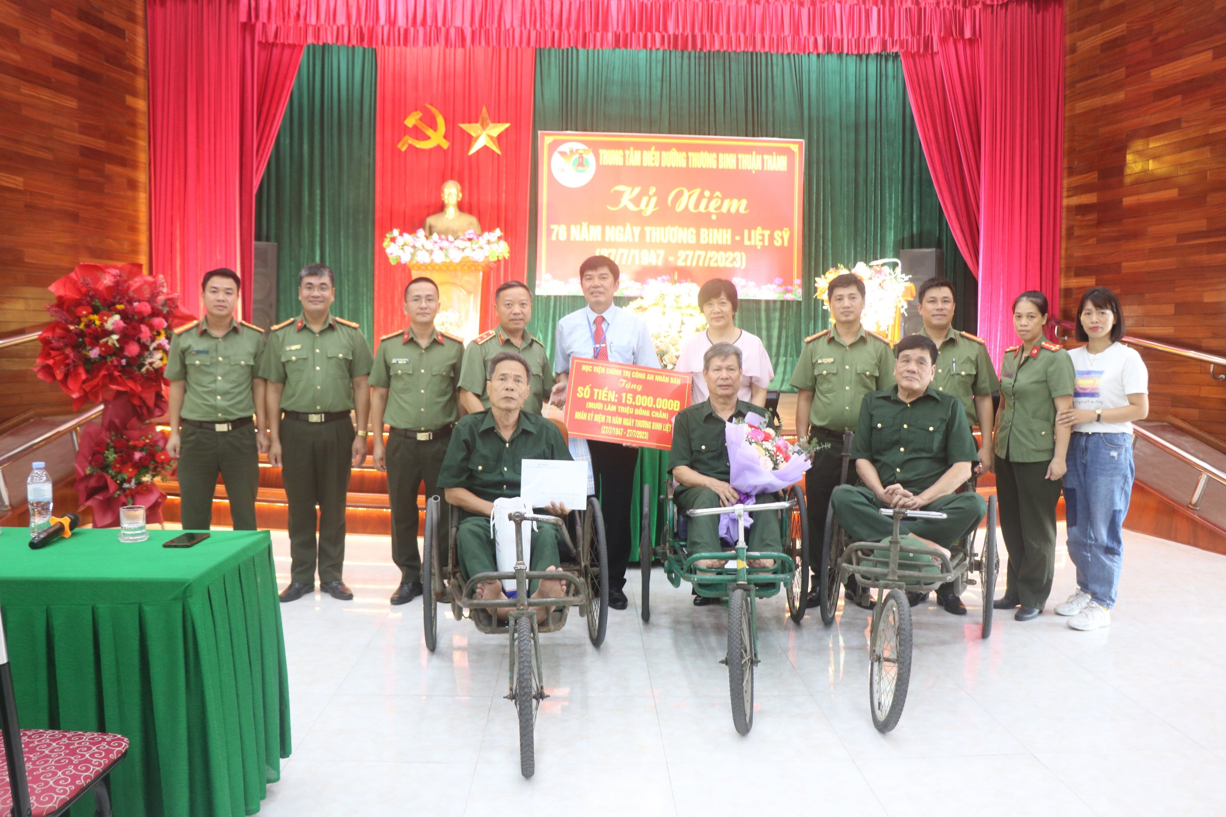 Nhân dịp kỷ niệm 76 năm ngày Thương binh - Liệt sỹ (27/7/1947 - 27/7/2023), ngày 26/7/2023, Đoàn công tác Học viện Chính trị CAND do đồng chí Trung tướng, PGS. TS Phan Xuân Tuy, Bí thư Đảng ủy, Giám đốc Học viện làm Trưởng đoàn đã đến thăm, tặng quà các đồng chí thương binh, bệnh binh đang điều dưỡng tại Trung tâm Điều dưỡng thương binh Thuận Thành, tỉnh Bắc Ninh.