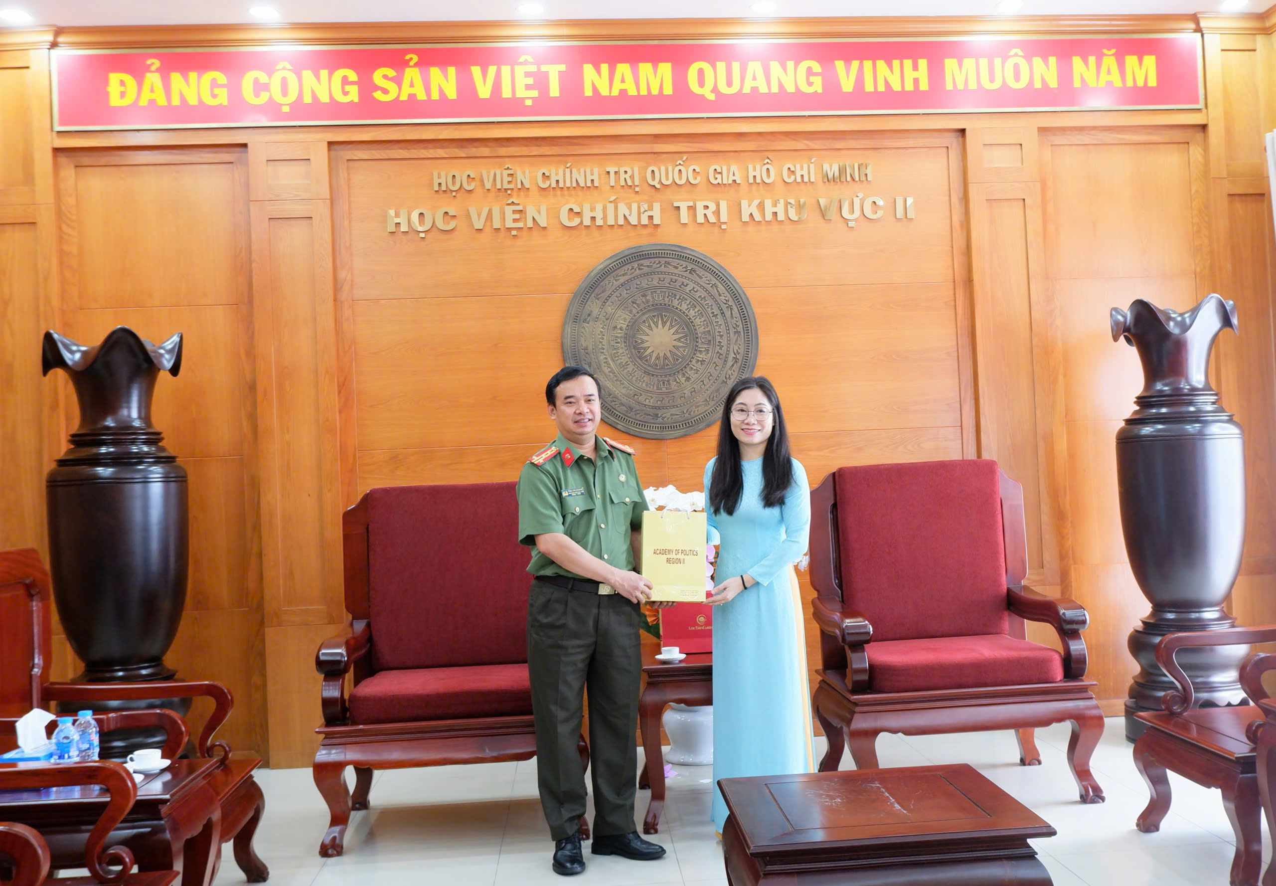 Tại buổi gặp mặt, đồng chí Trưởng đoàn đã gửi lời chúc mừng của đồng chí PGS.TS, NGƯT, Trung tướng Phan Xuân Tuy, Bí thư Đảng ủy, Giám đốc Học viện tới tập thể Đảng ủy, Ban Giám đốc Học viện Chính trị khu vực II và cá nhân đồng chí tân Giám đốc. Đồng thời bày tỏ tin tưởng rằng, với bản lĩnh chính trị vững vàng, năng lực lãnh đạo, quản lý và tâm huyết trong công tác đào tạo, bồi dưỡng cán bộ, đồng chí Tân Giám đốc sẽ cùng tập thể Học viện Chính trị khu vực II lãnh đạo, chỉ đạo thực hiện thắng lợi các mục tiêu, nhiệm vụ đã đề ra; triển khai thành công Chiến lược phát triển Học viện Chính trị khu vực II đến năm 2030, tầm nhìn 2045, xây dựng Học viện Chính trị khu vực II thật sự trở thành trung tâm đào tạo, bồi dưỡng cán bộ lãnh đạo, quản lý; nghiên cứu lý luận chính trị và tư vấn chính sách trọng điểm của khu vực phía Nam.