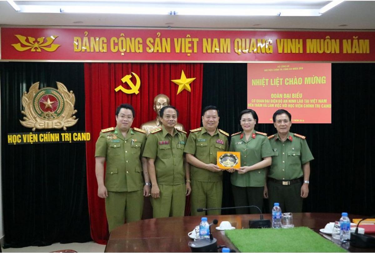 Ngày 16/5/2019, Đoàn đại biểu Cơ quan đại diện Bộ An ninh Lào tại Việt Nam do đồng chí Đại tá, TS Bun Lặm Phạ Xay Sổm Bắt, Trưởng Cơ quan đại diện Bộ An ninh Lào tại Việt Nam làm Trưởng đoàn đã đến thăm và làm việc với Học viện Chính trị Công an nhân dân. Về phía Học viện Chính trị Công an nhân dân, được sự ủy quyền của đồng chí Bí thư Đảng ủy, Giám đốc Học viện, đồng chí Đại tá, PGS.TS Đinh Ngọc Hoa, Phó Bí thư Đảng ủy, Phó Giám đốc Học viện chủ trì buổi làm việc. Tham dự còn có đồng chí Đại tá Nguyễn Văn Quyền, Ủy viên Ban Thường vụ Đảng ủy, Phó Giám đốc Học viện cùng đại diện lãnh đạo các đơn vị chức năng thuộc Học viện.