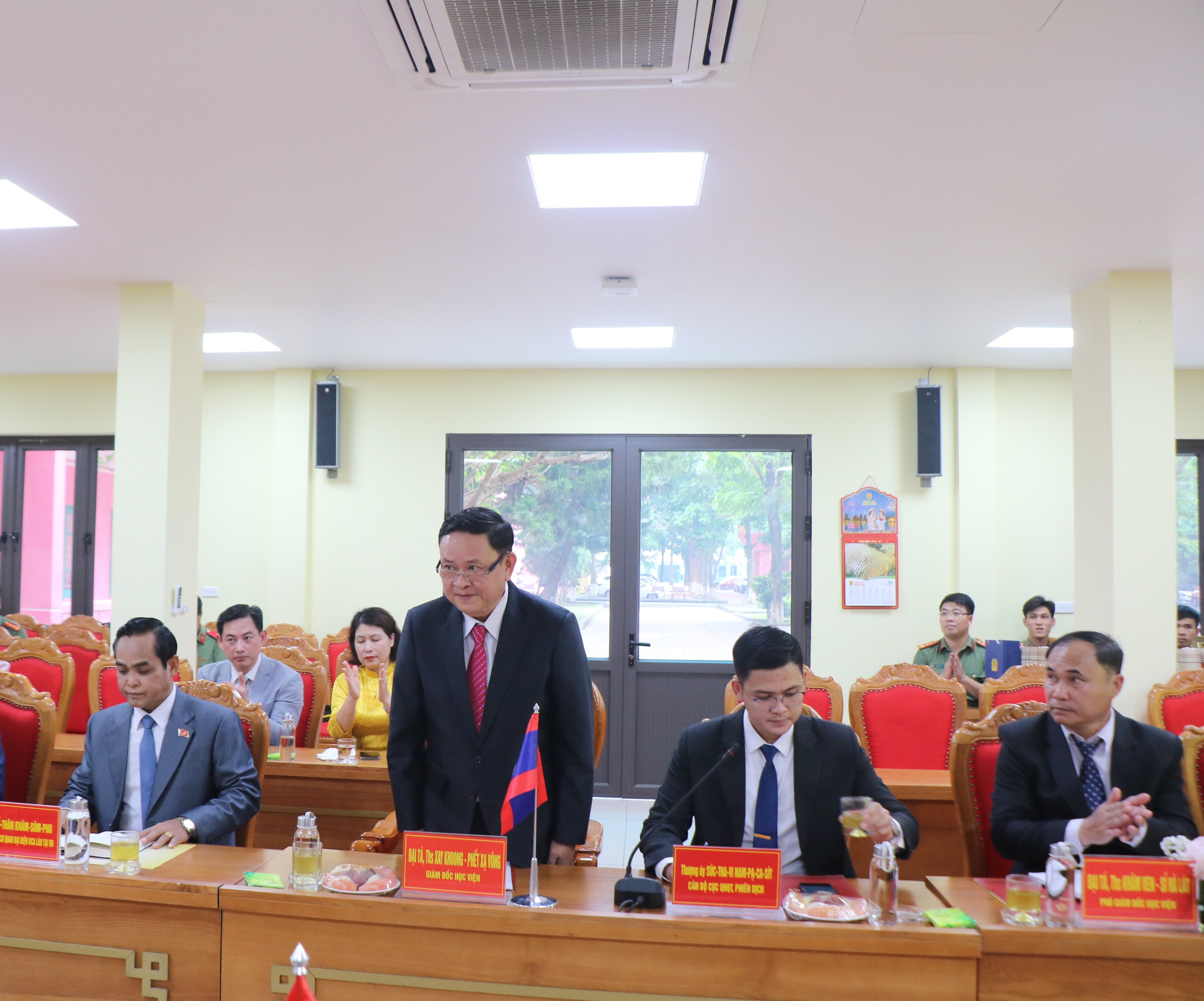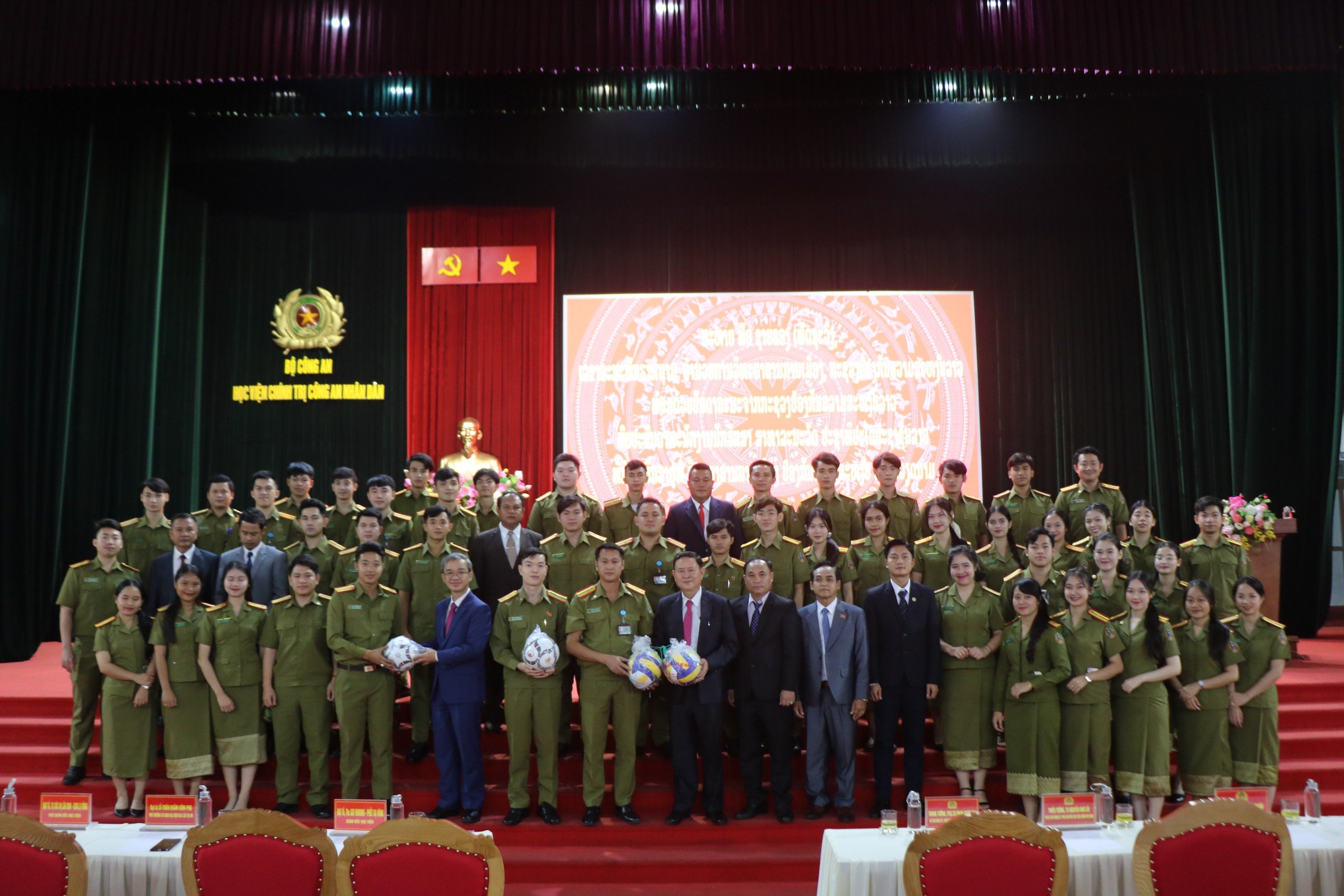Đoàn Đại biểu Học viện Chính trị, Bộ Công an Lào do đồng chí Đại tá, Ths Xay Khoong - Phết Xạ Vông, Bí thư Đảng ủy, Giám đốc Học viện làm Trưởng đoàn; tham gia đoàn có các đồng chí Phó Giám đốc Học viện; đại diện lãnh đạo một số đơn vị chức năng: Văn phòng Học viện, Phòng Hậu cần, cán bộ phiên dịch.