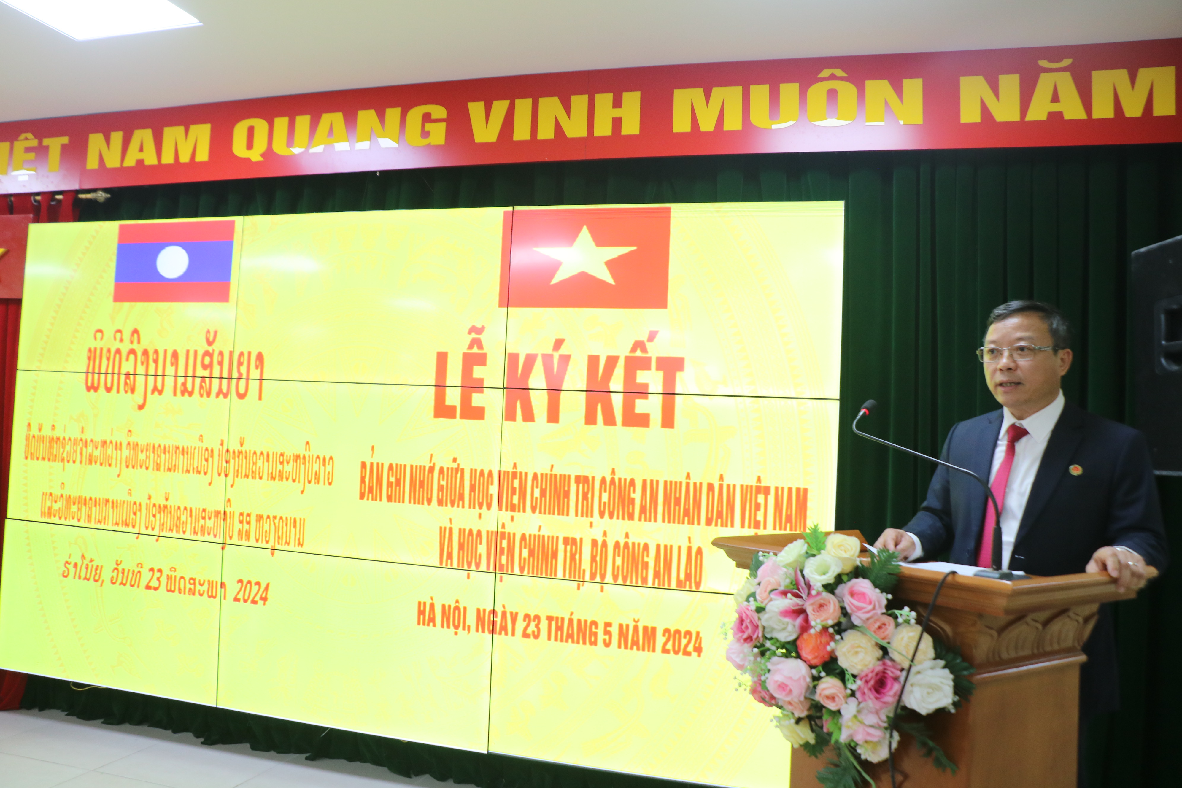 Căn cứ Hiệp định hợp tác giữa Bộ Công an nước Cộng hòa Xã hội Chủ nghĩa Việt Nam và Bộ Công an nước Cộng hòa Dân chủ Nhân dân Lào; Kế hoạch triển khai Hiệp định hợp tác giữa Bộ Công an hai nước năm 2024, ký ngày 29/9/2023; được sự đồng ý của lãnh đạo Bộ Công an hai nước; ngày 23/5/2024, Đoàn Đại biểu cấp cao Học viện Chính trị, Bộ Công an Lào đã đến thăm, làm việc và ký Bản ghi nhớ với Học viện Chính trị CAND Việt Nam.