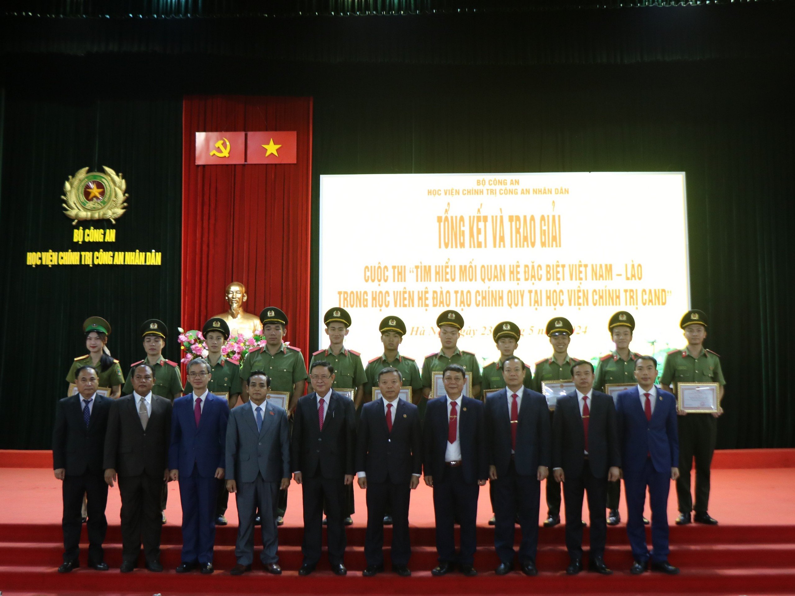 Đồng chí Trung tướng, PGS.TS Phan Xuân Tuy trao giải cho các học viên đạt giải cuộc thi “Tìm hiểu mối quan hệ đặc biệt Việt Nam - Lào trong trong học viên hệ đào tạo chính quy tại Học viện Chính trị CAND Việt Nam”
