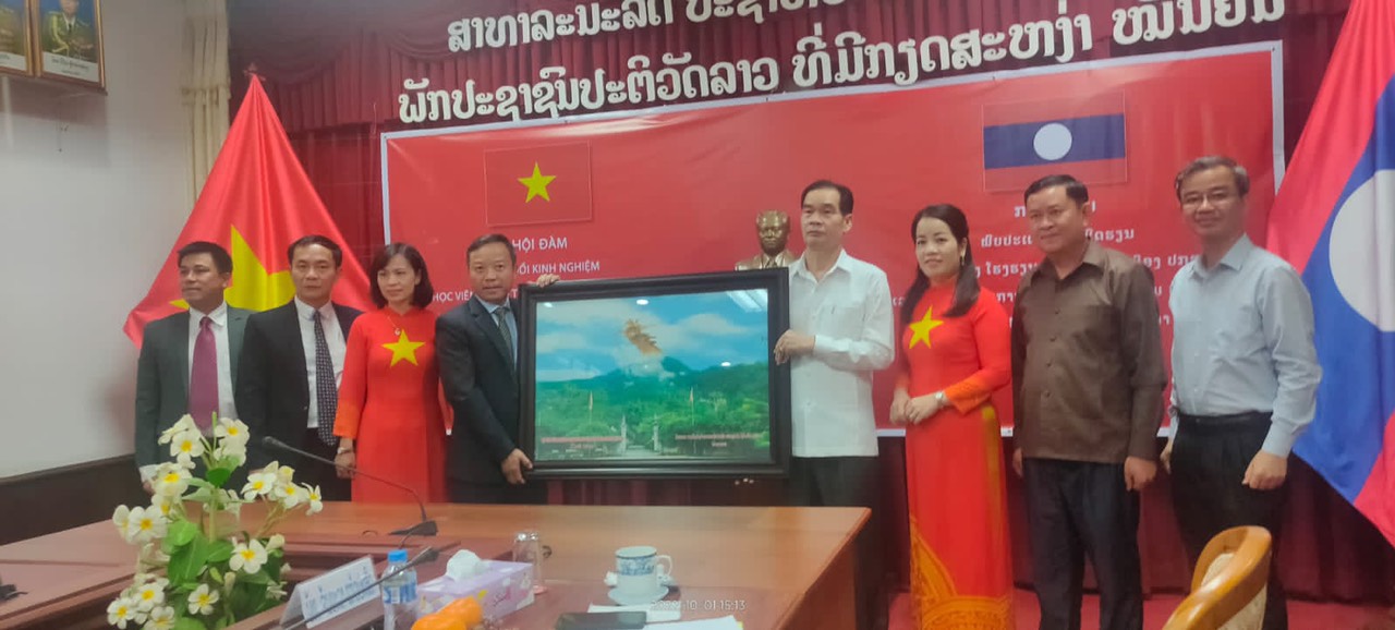 Tiếp theo chương trình công tác của Đoàn Đại biểu Học viện Chính trị CAND và Lớp cao cấp lý luận chính trị Khóa 27 mở tại Học viện học tập thực tế và thực hành chính trị, xã hội và tham quan, tại nước Cộng hòa Dân chủ Nhân dân Lào, chiều ngày 01/10/2022, Đoàn Đại biểu Học viện do đồng chí Trung tướng PGS, TS. Phan Xuân Tuy, Bí thư Đảng ủy, Giám đốc Học viện làm Trưởng đoàn đã hội đàm, trao đổi với Trường Lý luận Chính trị, Bộ Công an Lào.